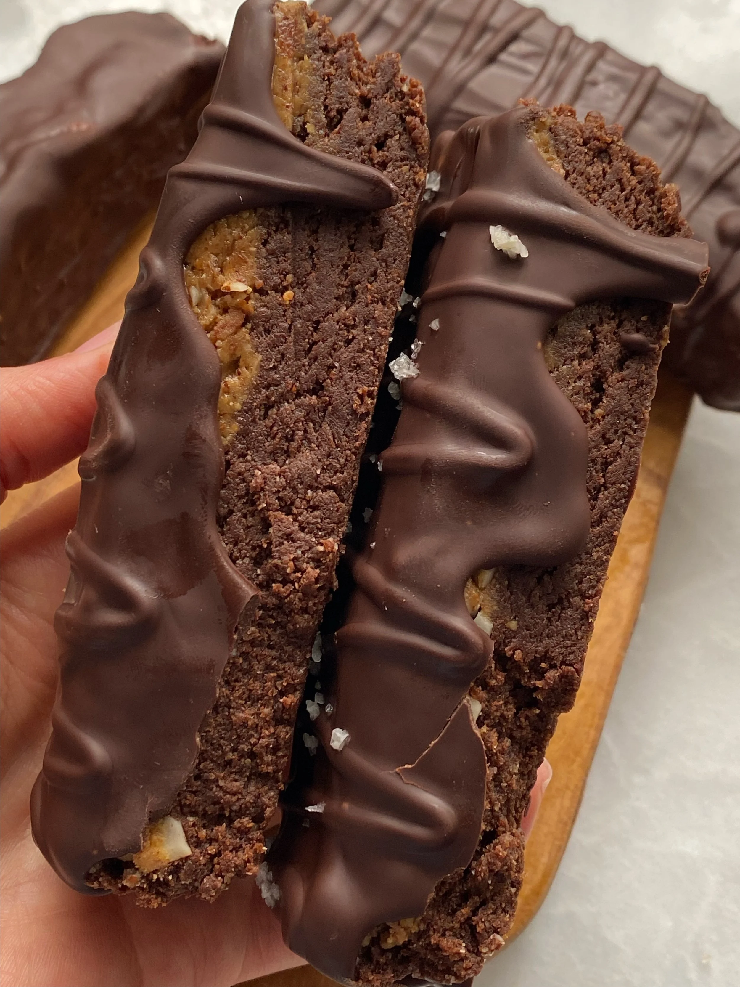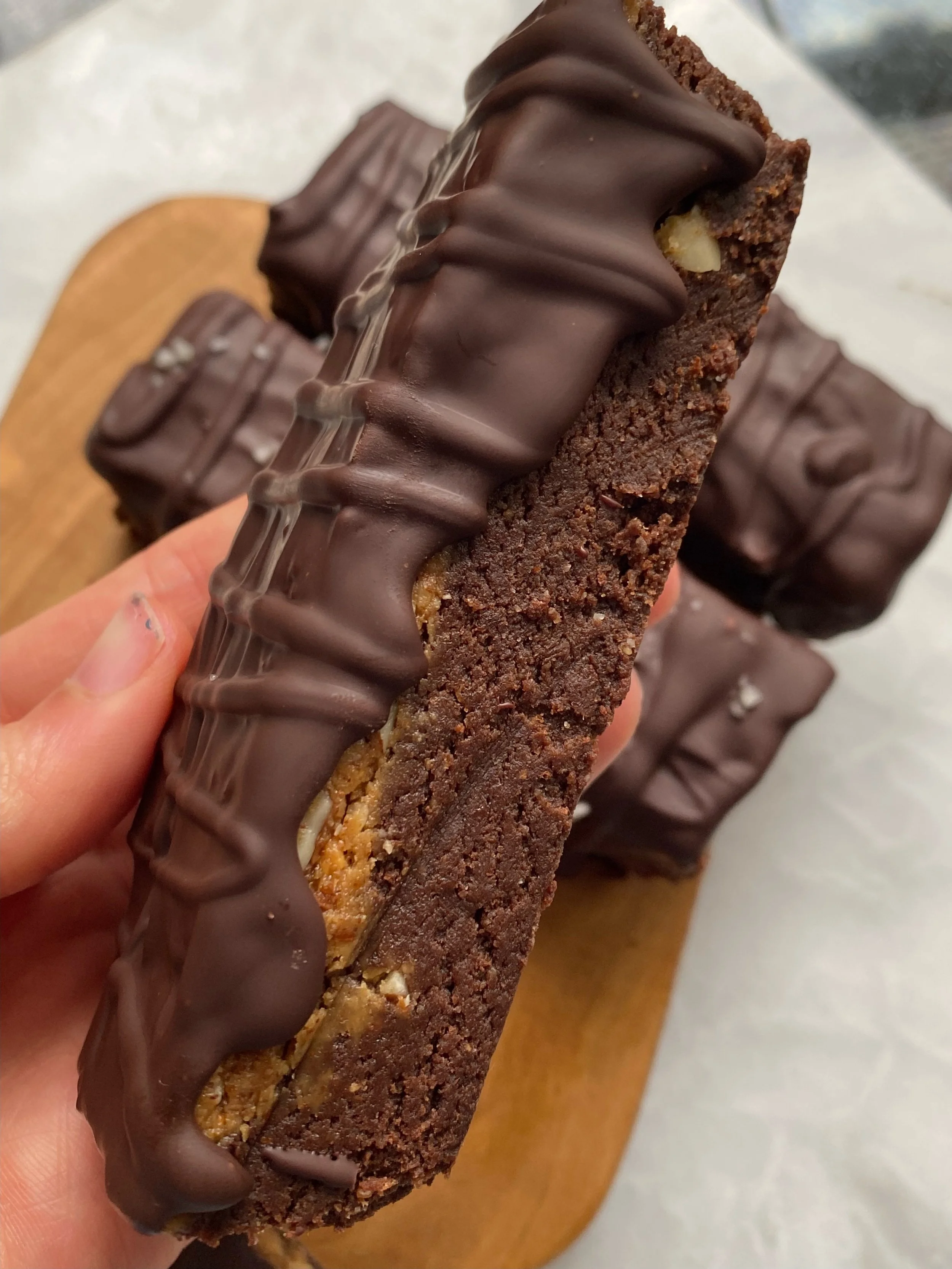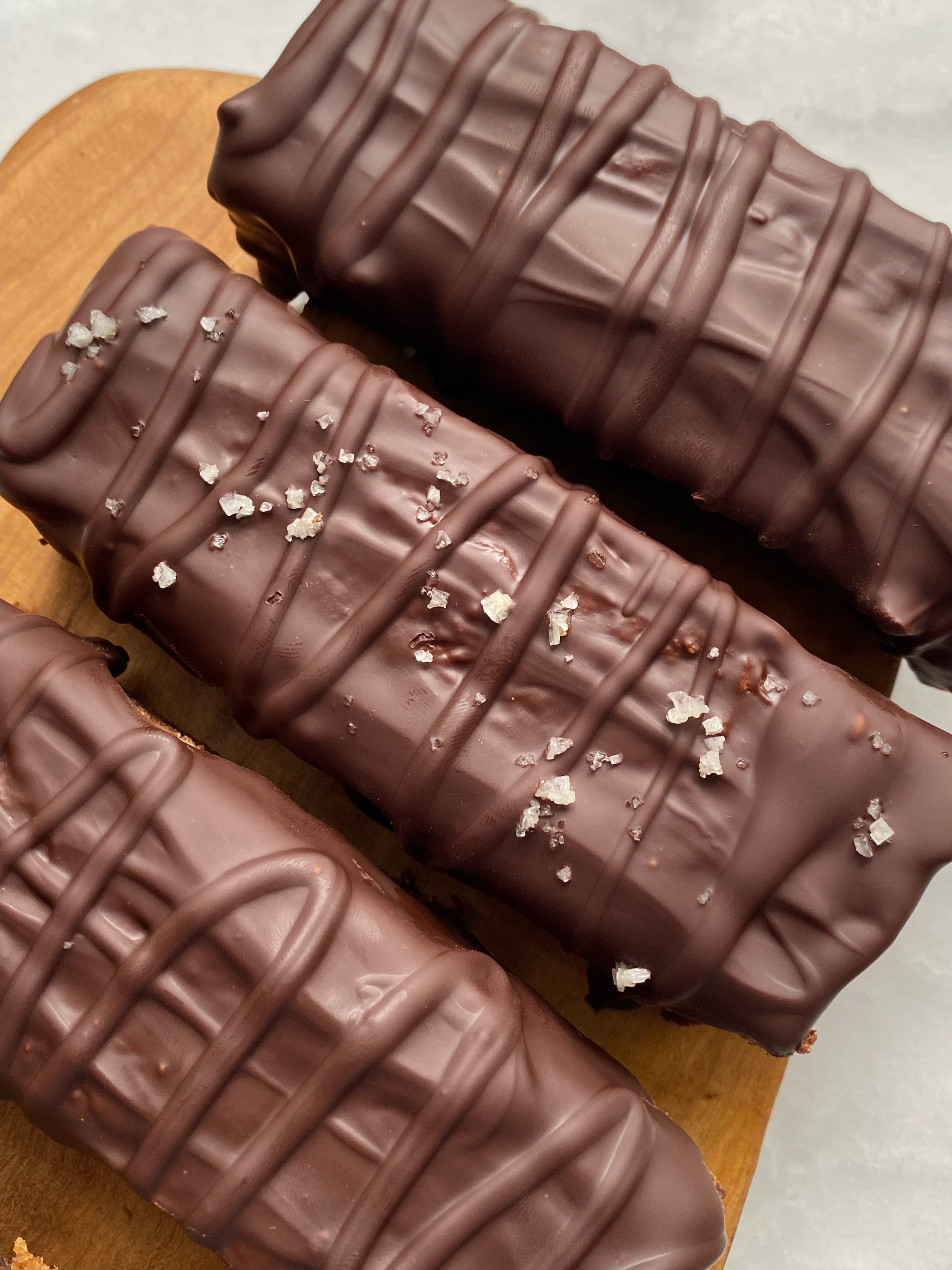 4. After the 30 minutes, melt the chocolate and coat each bar in the chocolate. Repeat until all the bars are coated.