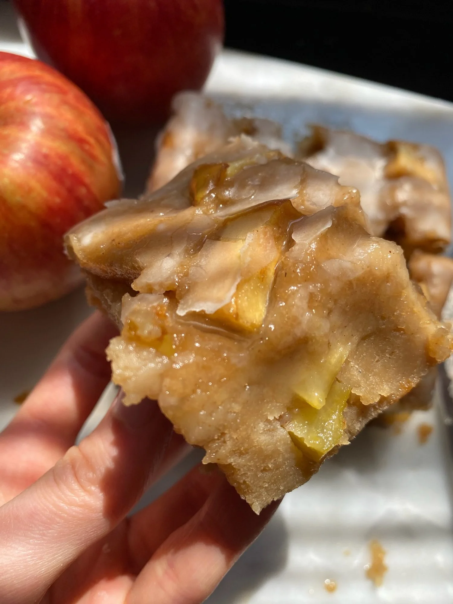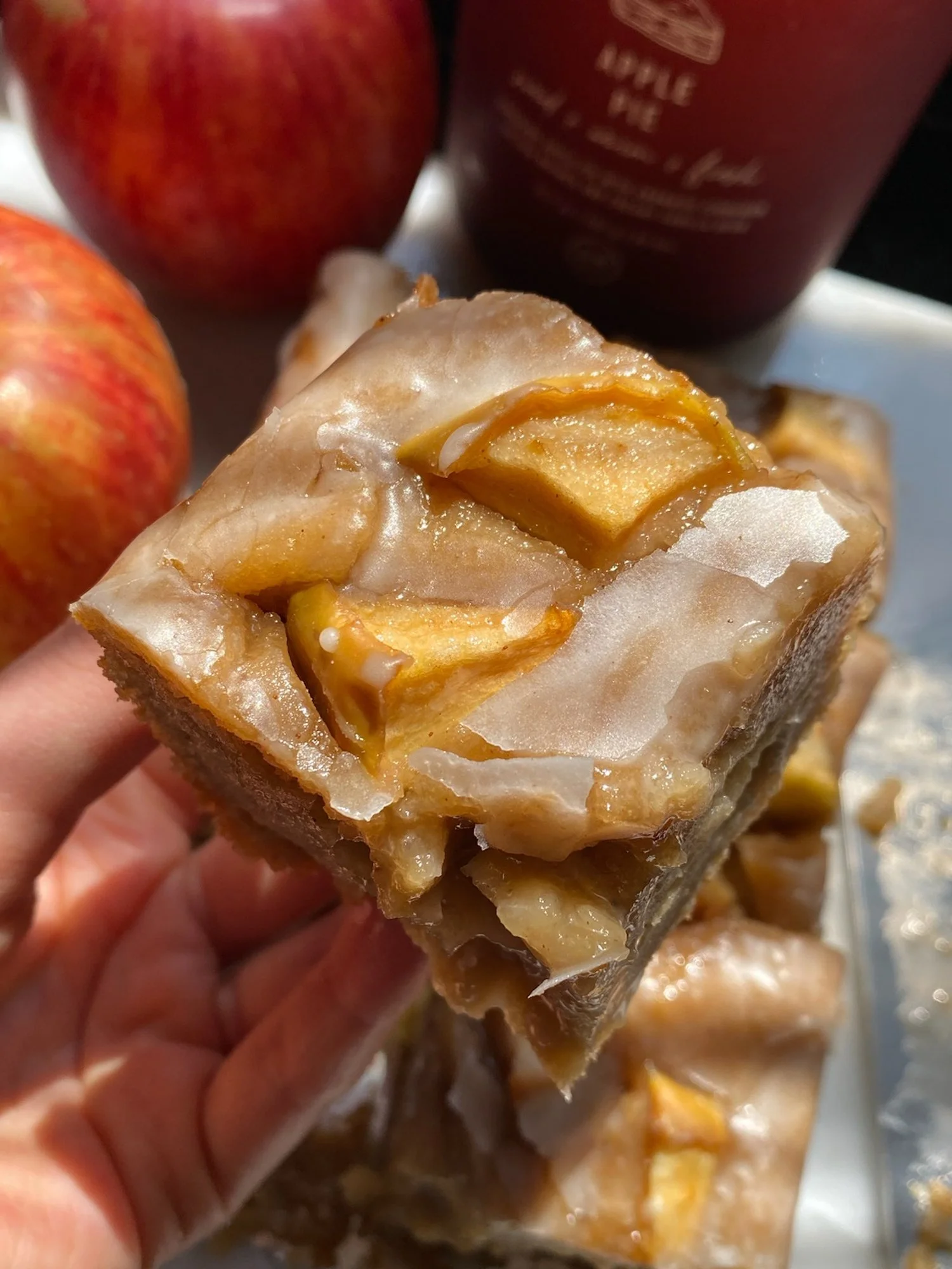 With fall quickly approaching I am super excited to get to baking all the fall treats. One of the first are these delicious apple fritter bars with glaze on top.