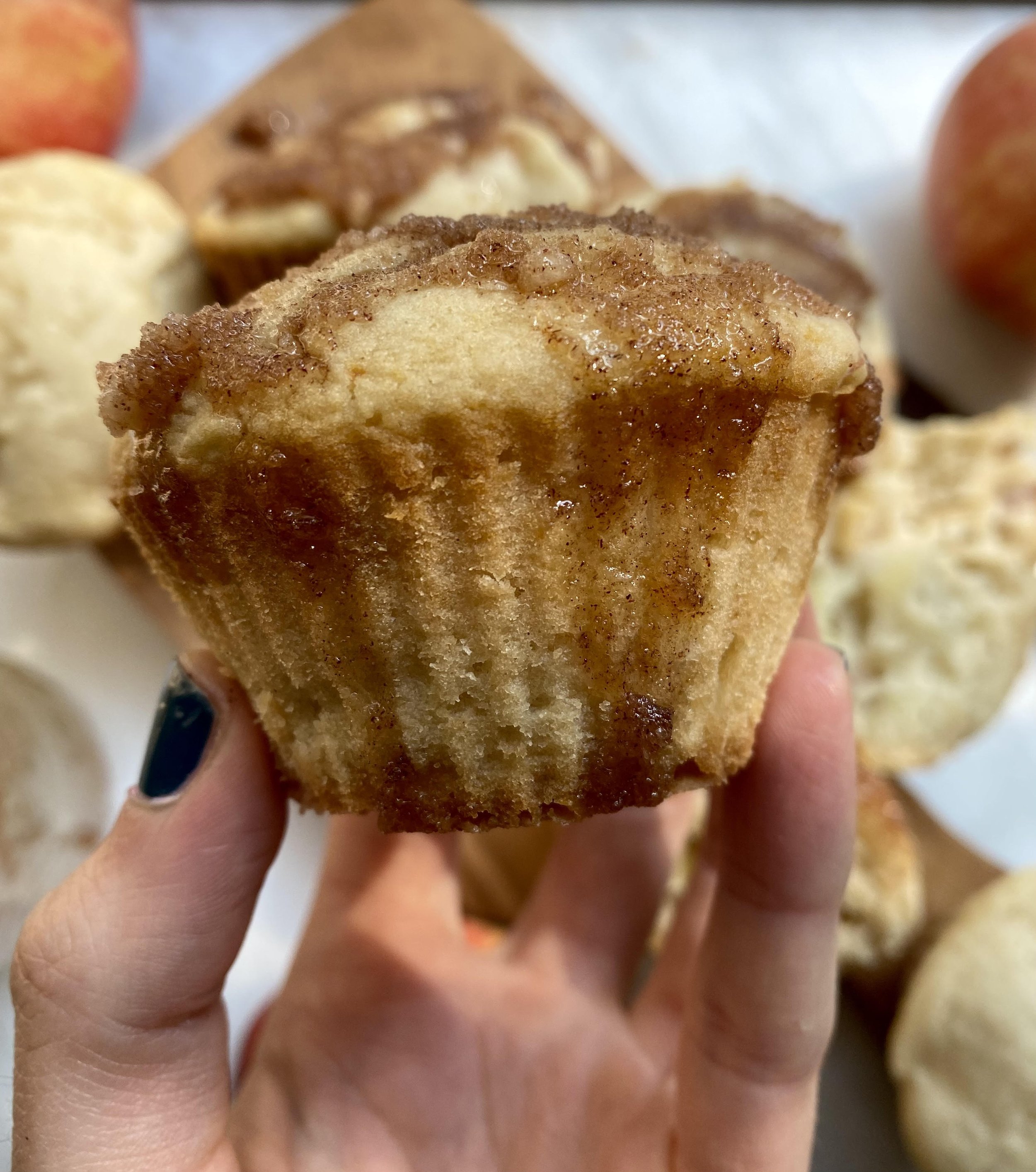 TIP: coat the chopped apple in flour before adding to the batter. This will prevent the apple from sinking to the bottom.