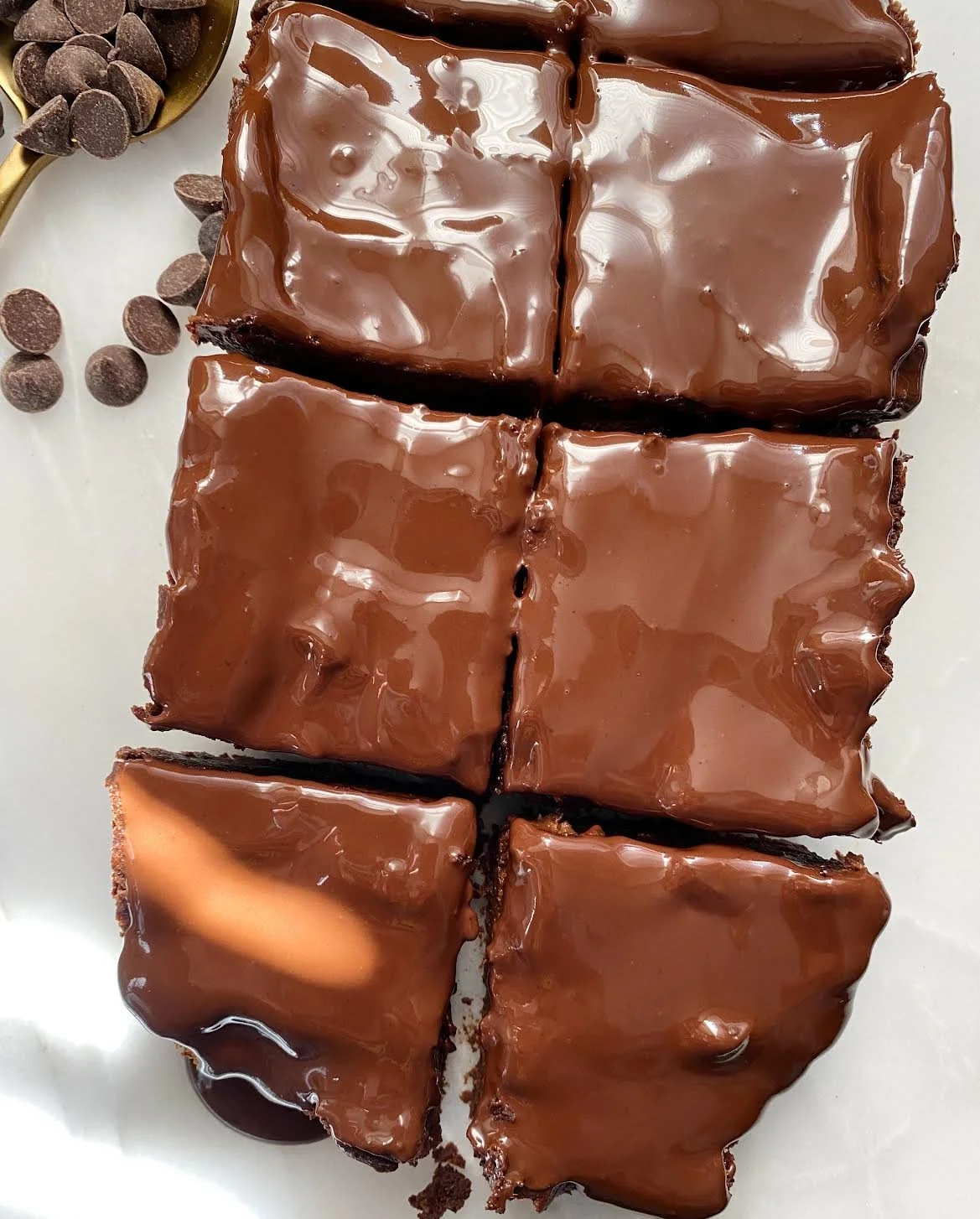 10.Once the brownies are cooled, add the melted chocolate on top.