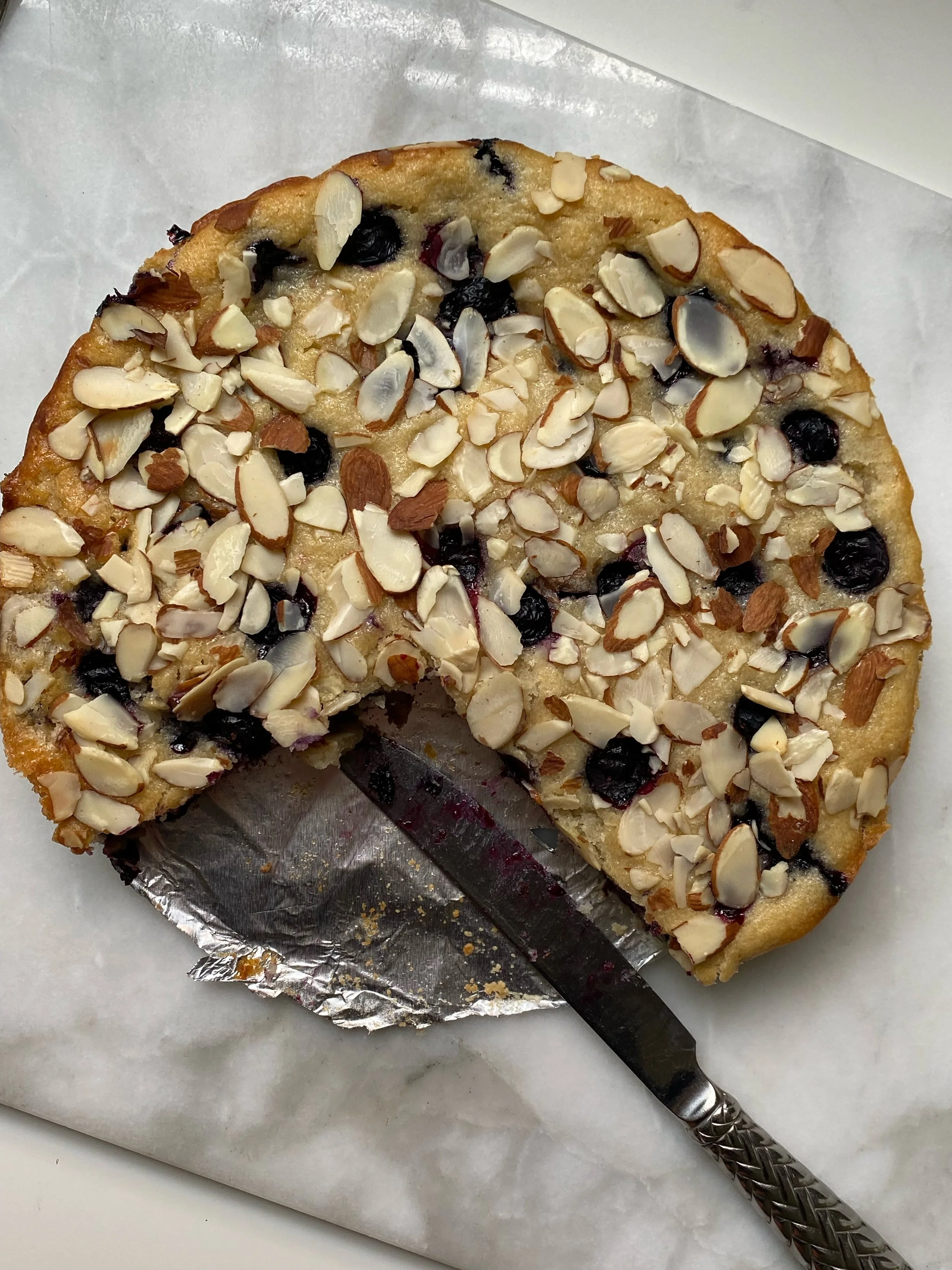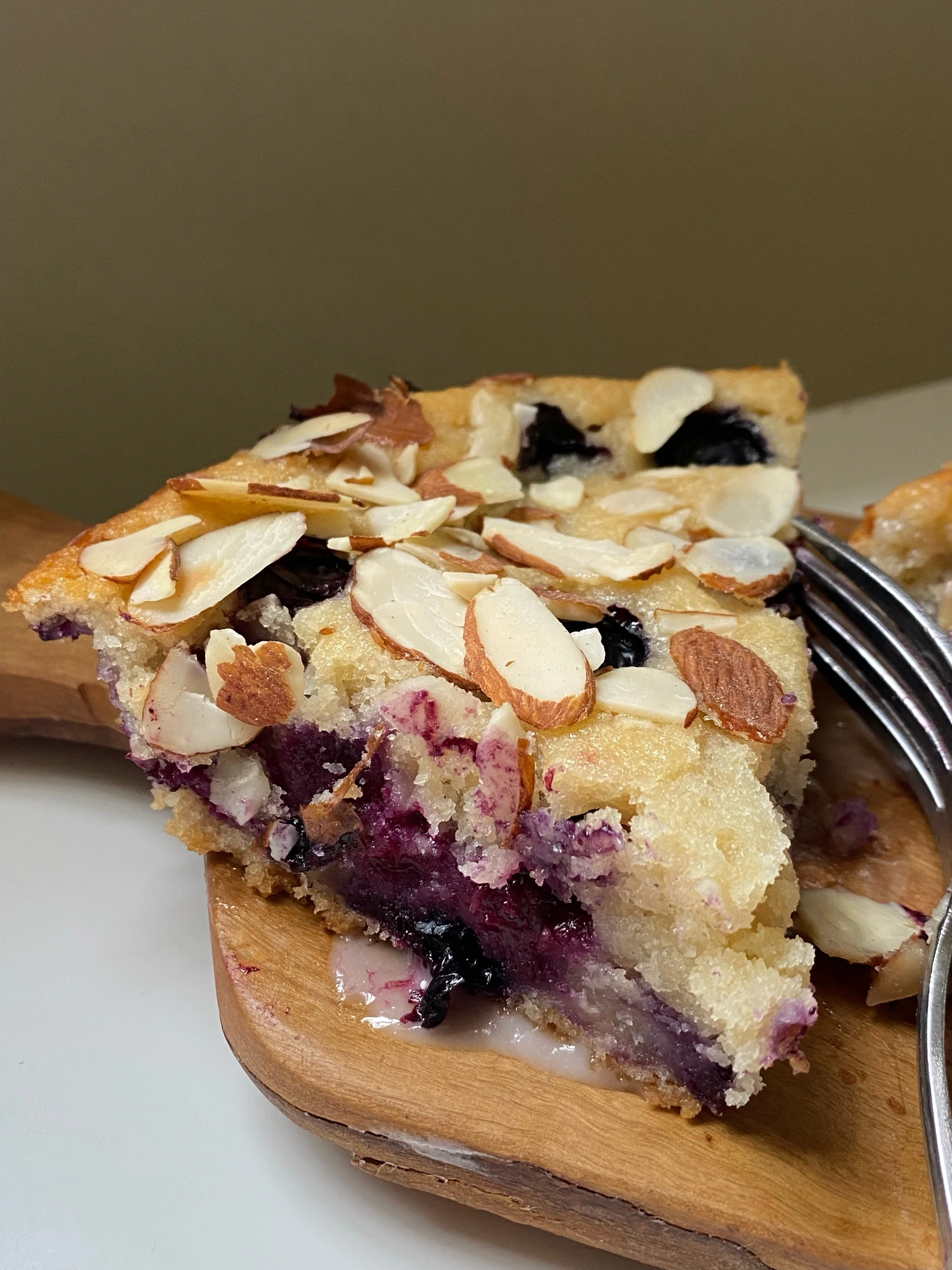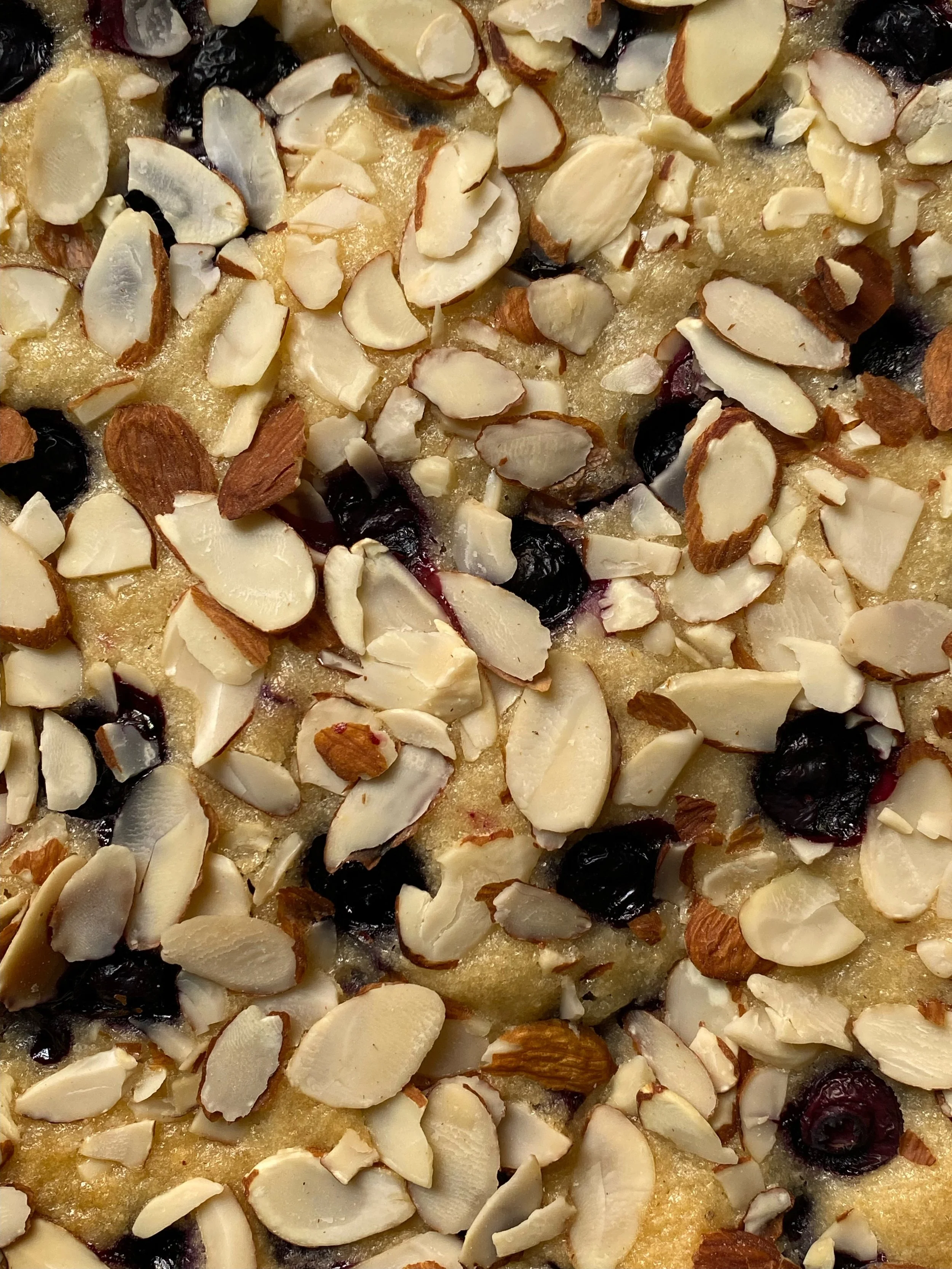 Vegan Blueberry Cake Topped with Sliced Almonds