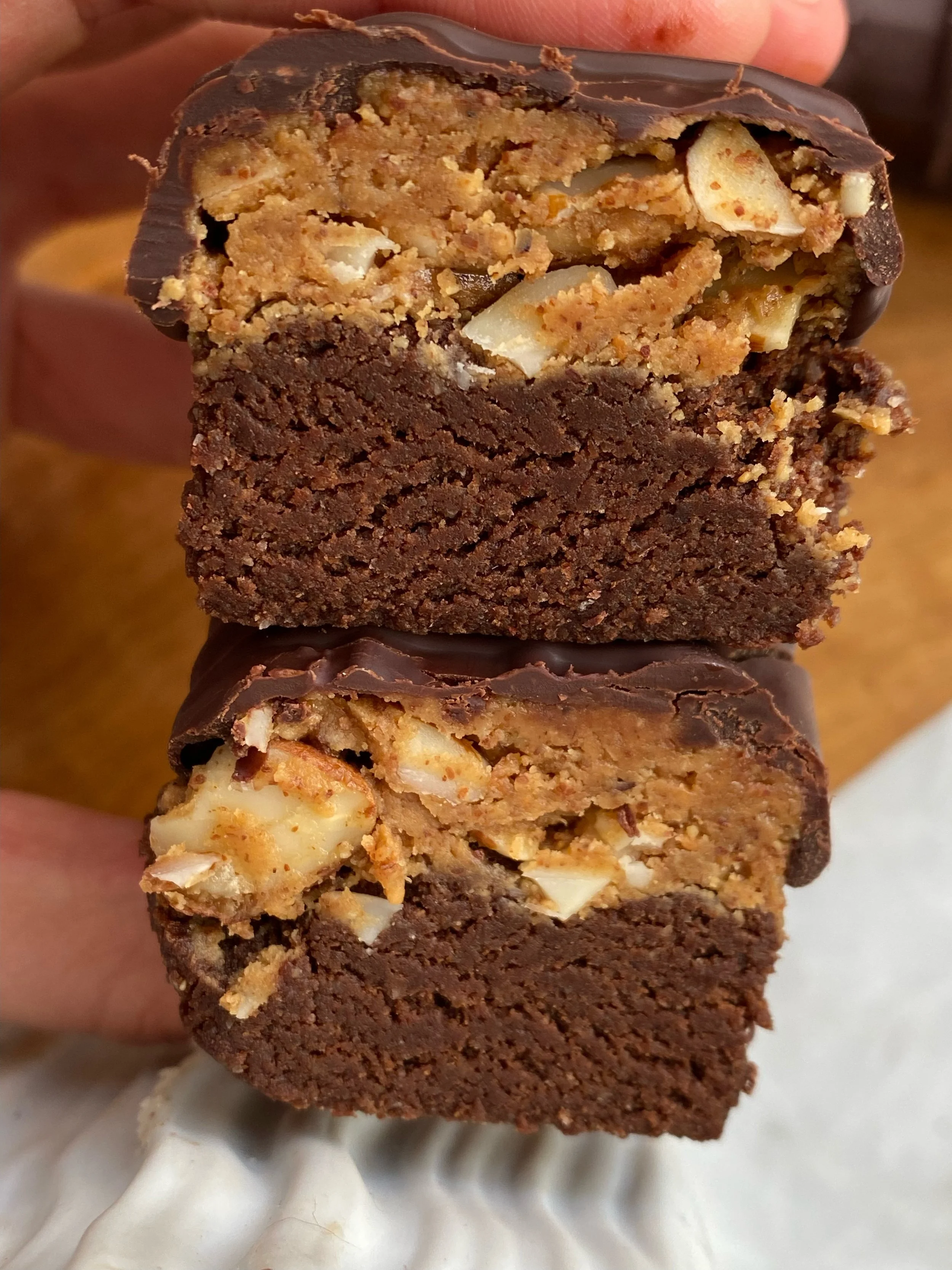 These no-bake brownie bites are made with dates, nuts, cocoa powder, and protein powder, then coated in rich melted chocolate. A healthy, gluten-free, and vegan-friendly treat!