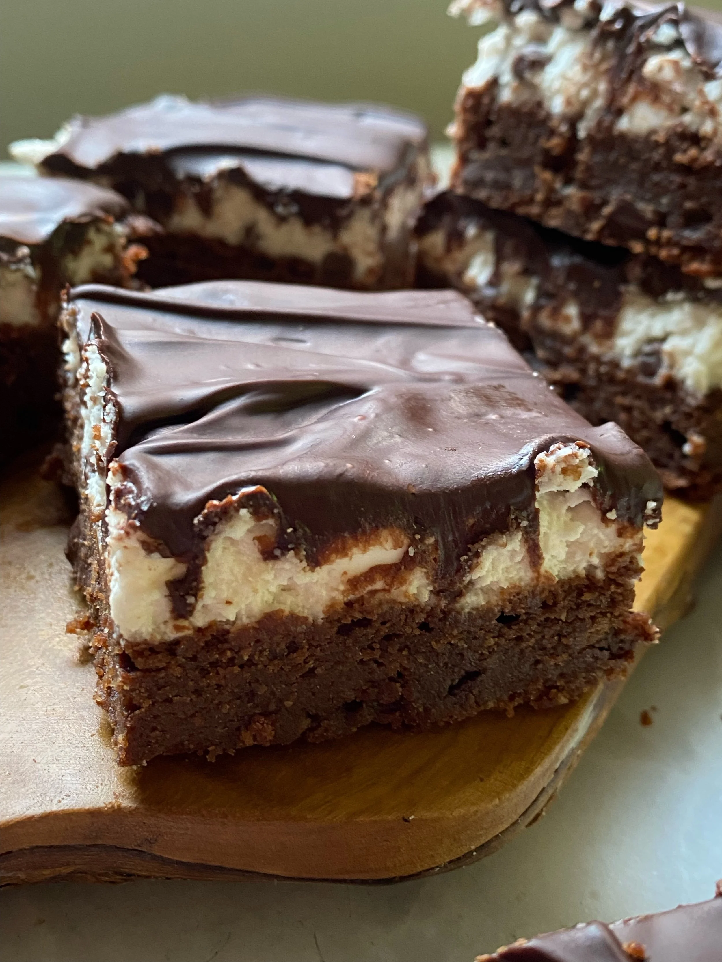 These brownies are perfect if you love anything chocolate + coconut. The brownies aren’t overly sweet, the coconut cream adds freshness, and the chocolate topping brings all the flavors together.