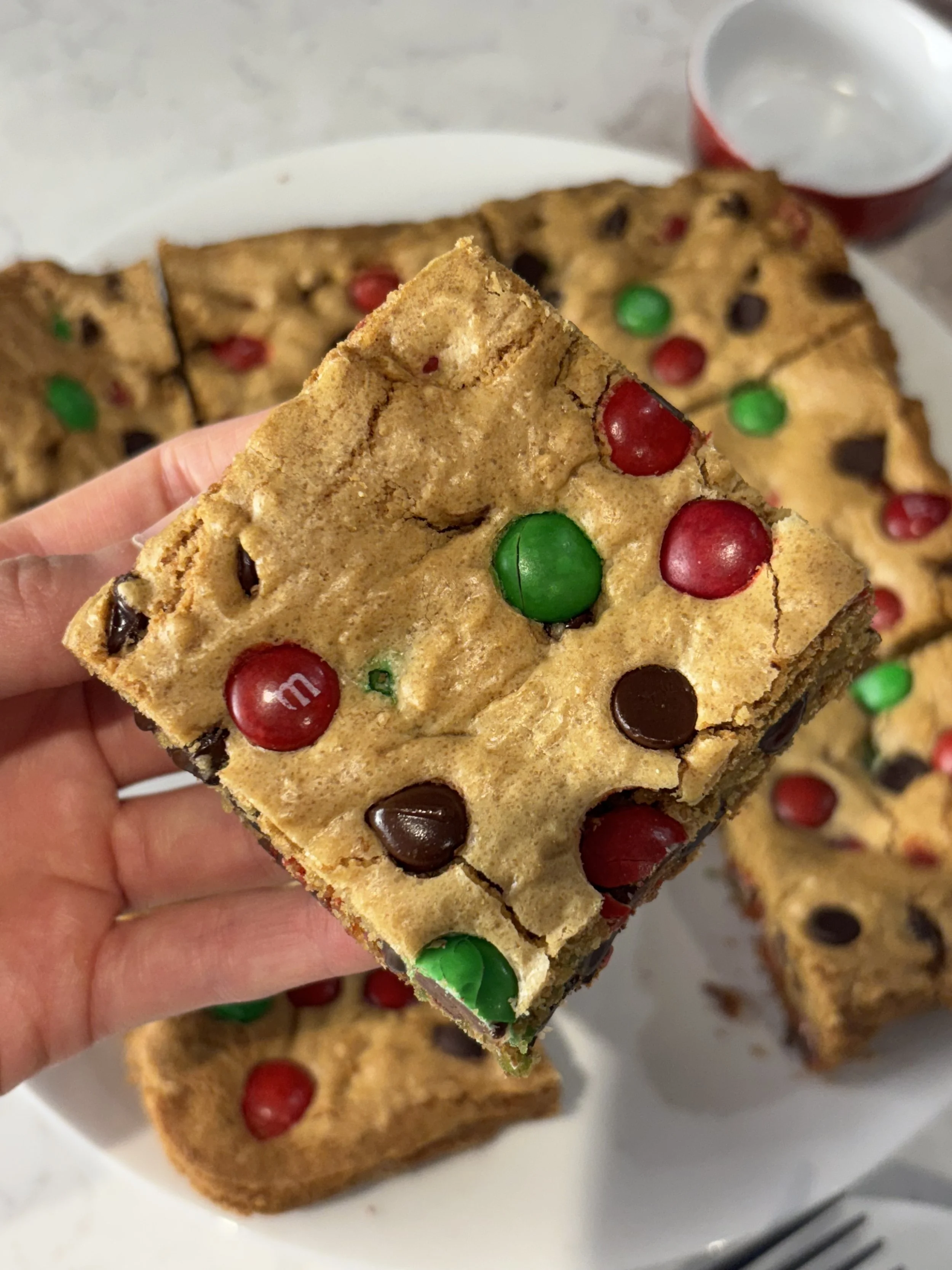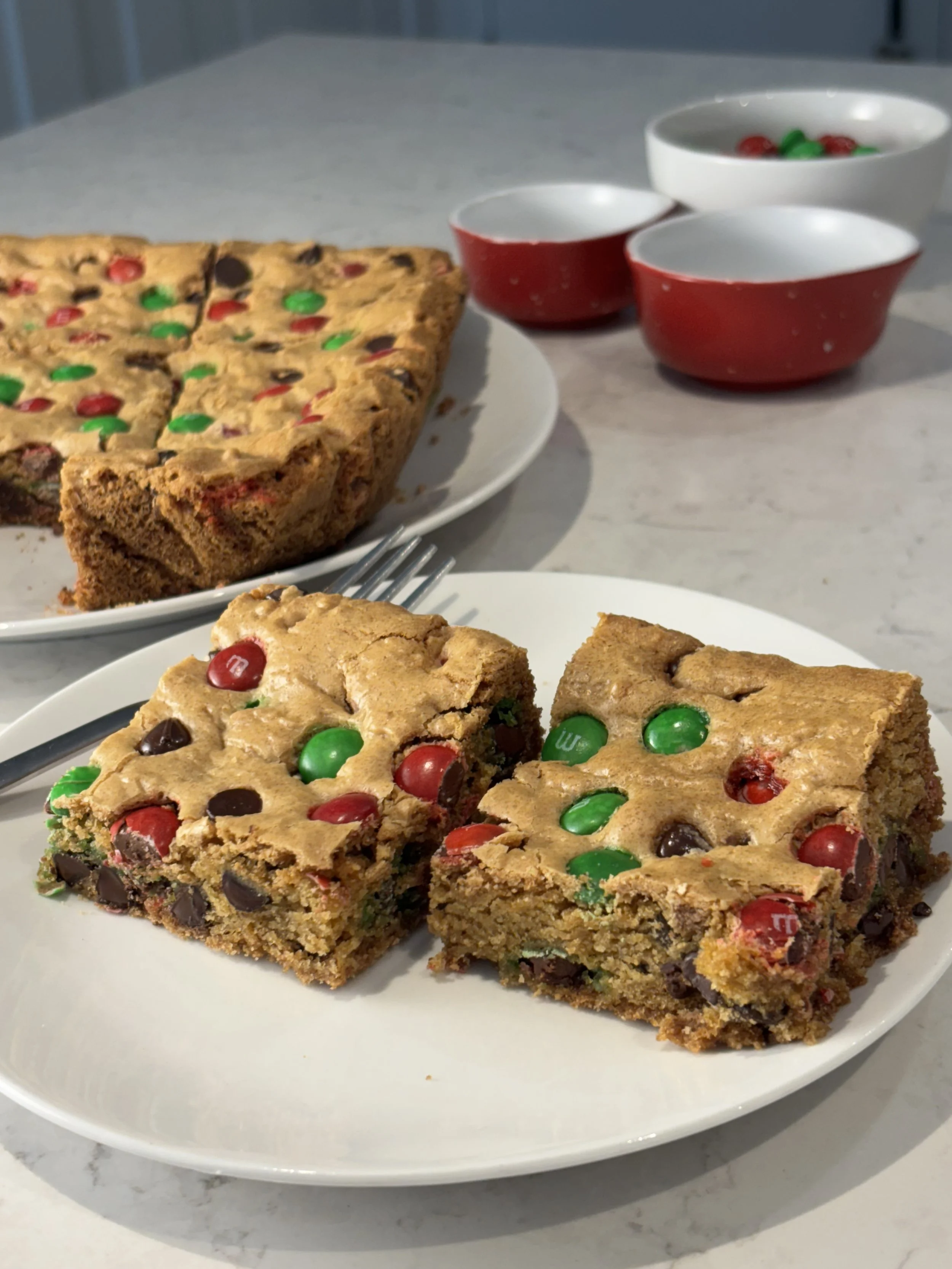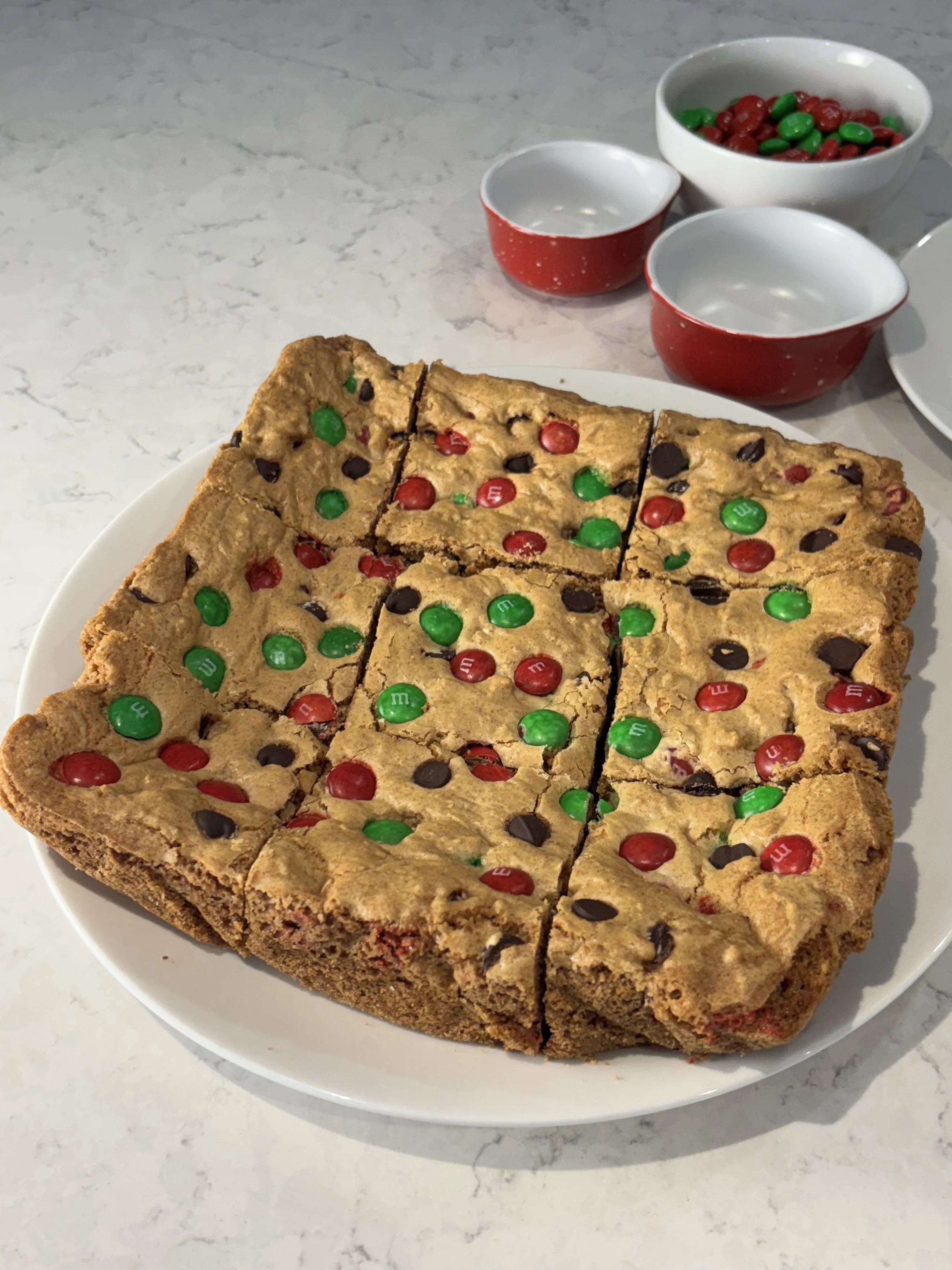 Loaded with chocolate: M&Ms and chocolate chips for the ultimate cookie bar.