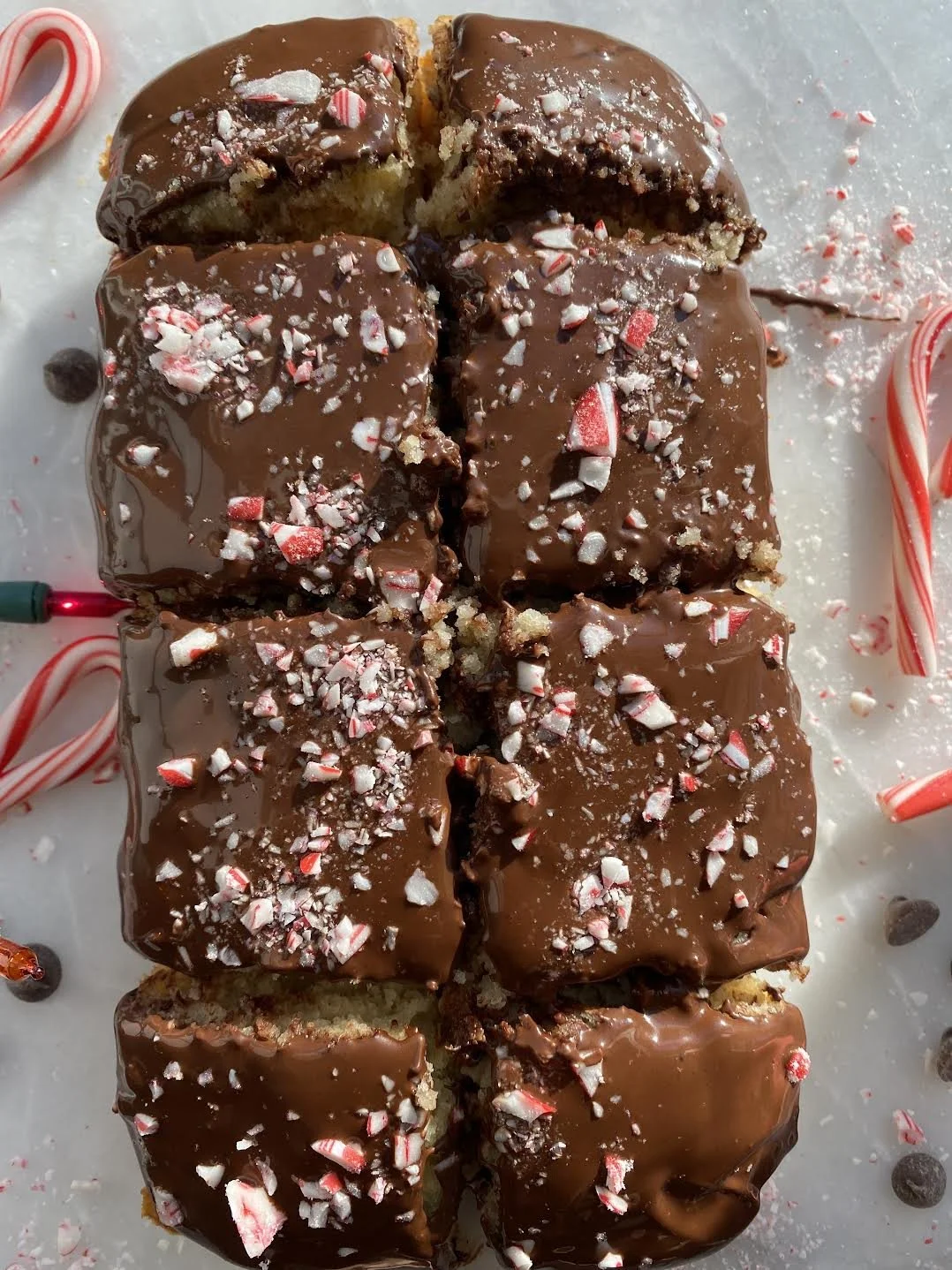 7. Once cooled, top with the melted chocolate and crushed candy cane.