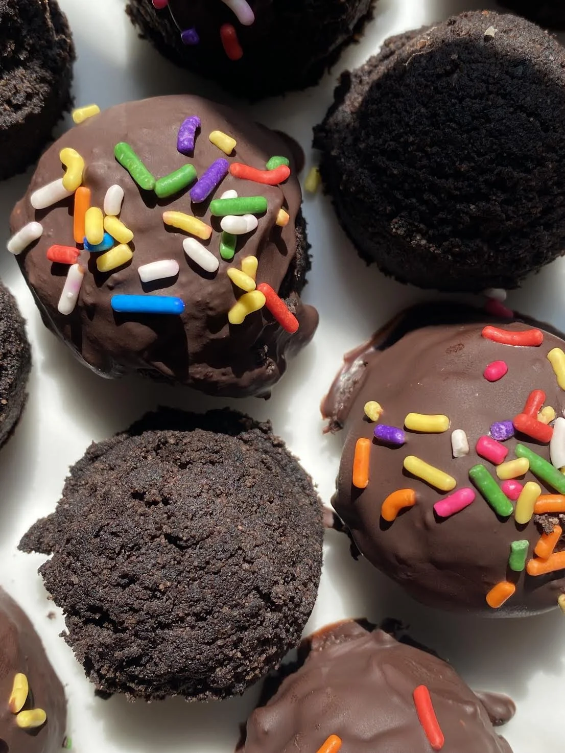 These bites truly make the perfect healthier and simple dessert. The applesauce creates an ultra-fudgy texture that will satisfy any sweet tooth. The chocolate coating takes this recipe to the next level. I love adding sprinkles on top as well but that is optional.