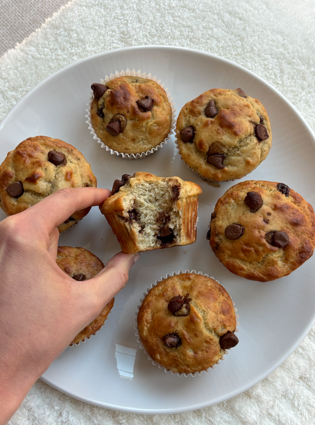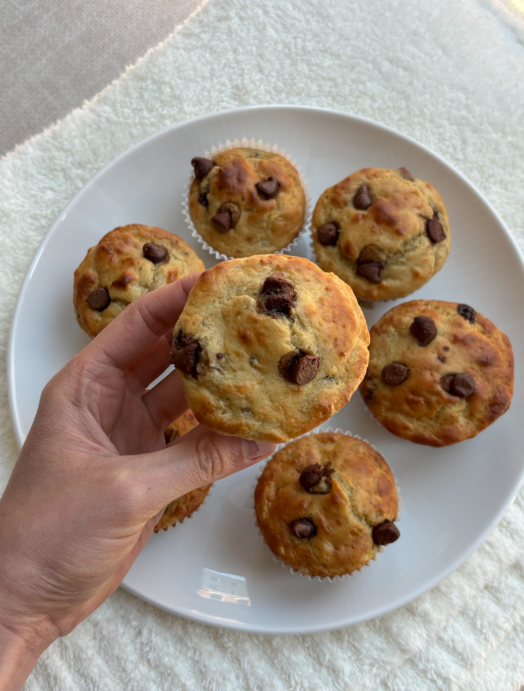 These muffins are naturally sweetened with ripe bananas and chocolate chips, made extra soft with Greek yogurt, and baked to get that tall, rounded bakery top.