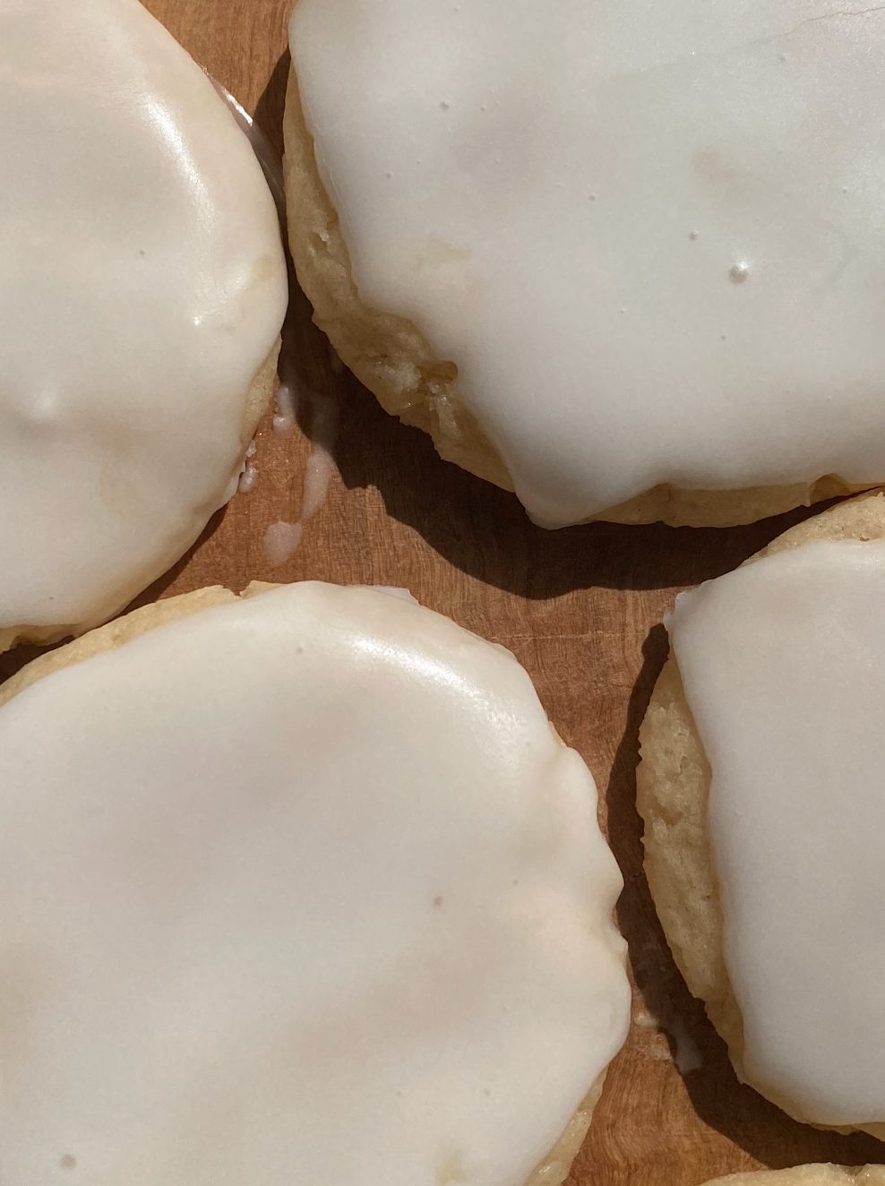 Allow to completely cool before adding the glaze. To make the glaze, combine the powdered sugar and lemon juice. Slowly add in the lemon juice. Continue to stir until desired consistency is reached. Pour over cookies.