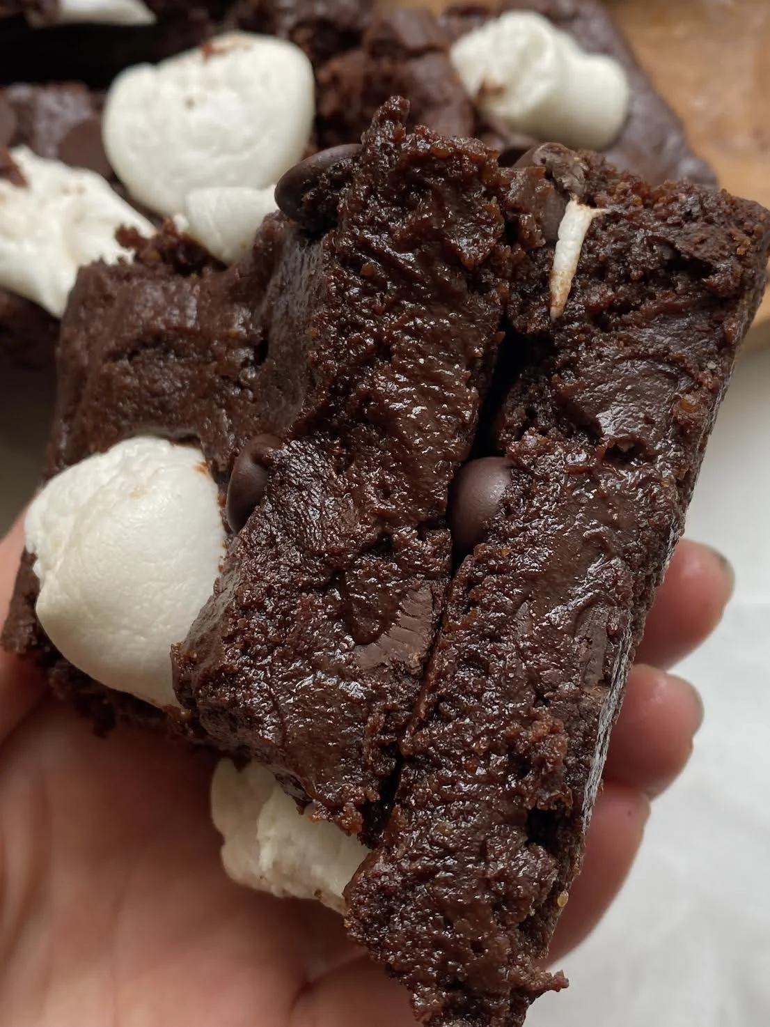 5. OPTIONAL: take the brownies out 10 minutes before they are done and sprinkle more marshmallows on top then place back in the oven for the remainder of time.