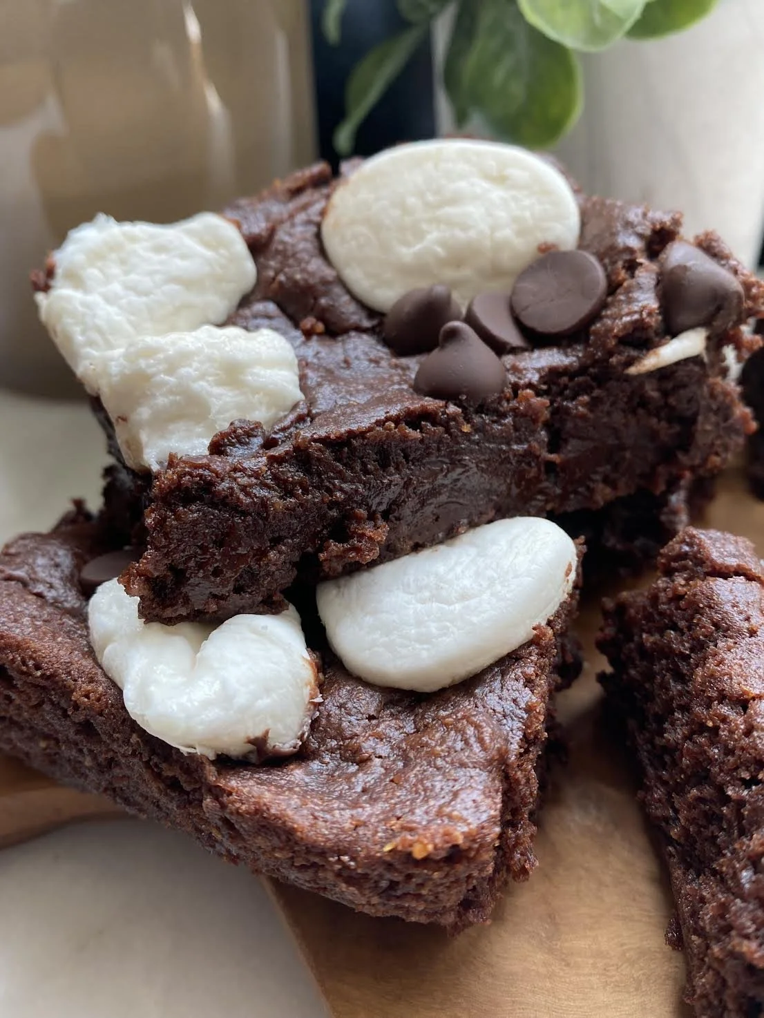 These marshmallow brownies seriously have become my new obsession. The texture is ultra-fudgy and almost melts in your mouth. Everything is made in one bowl and ready within 35 minutes between prepping and baking. I love topping my brownies with vegan chocolate ice cream to take them to the next level.