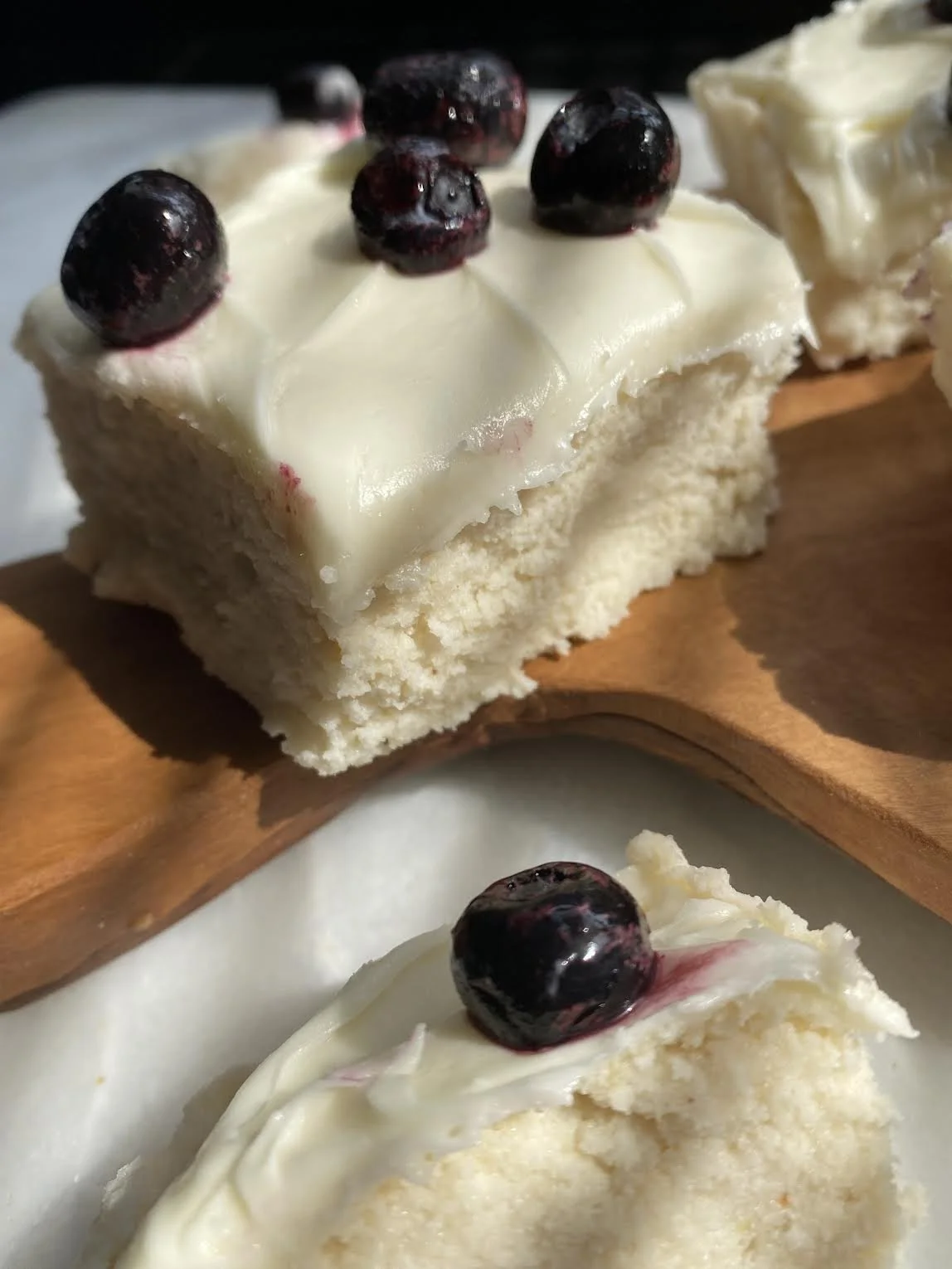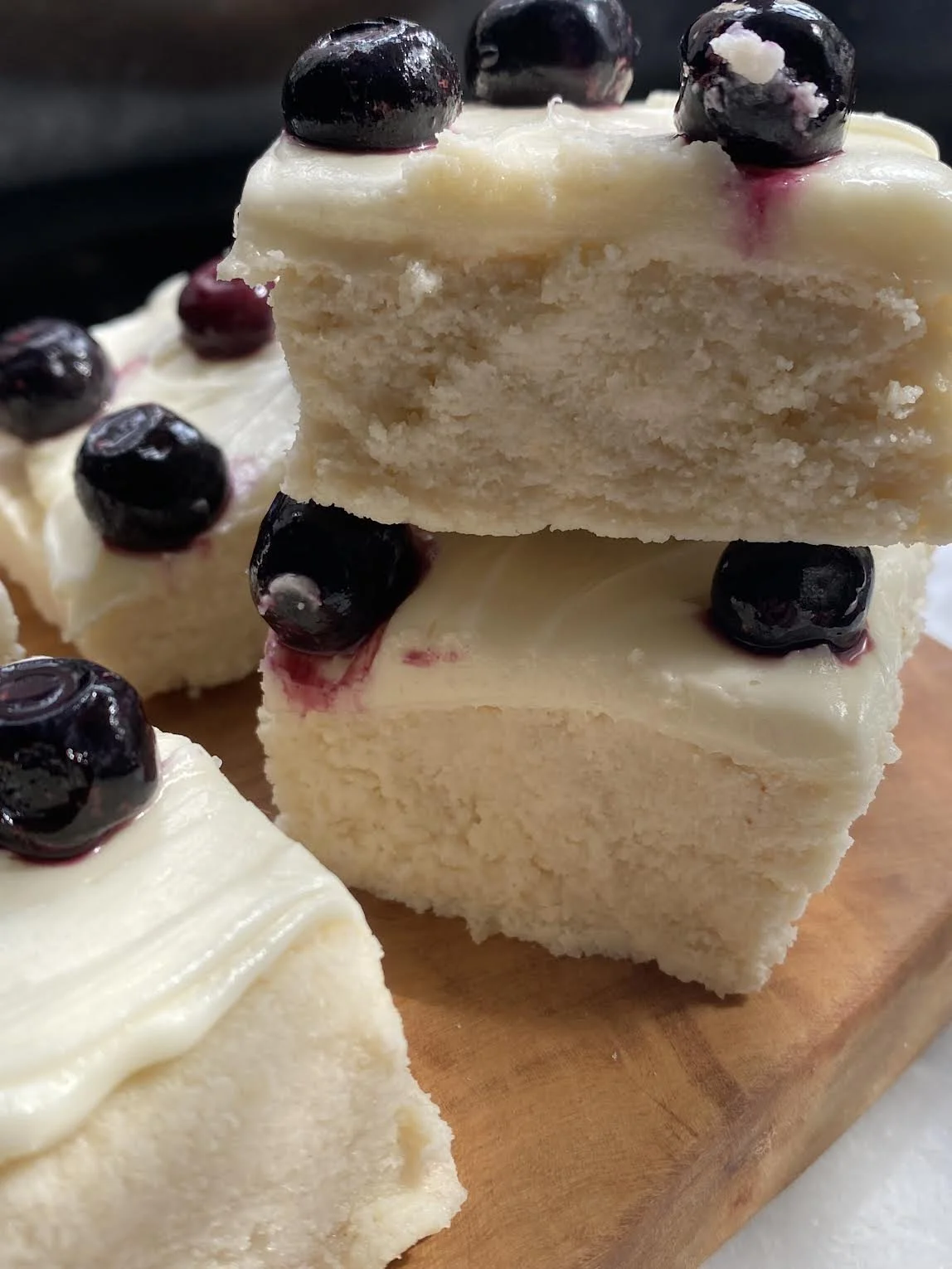 Optional: frosting + blueberries: I used a store-bought frosting. You can really top these with whatever you want or leave as is. I also topped mine with frozen blueberries. Again, you can top with whatever fruit you want or none.