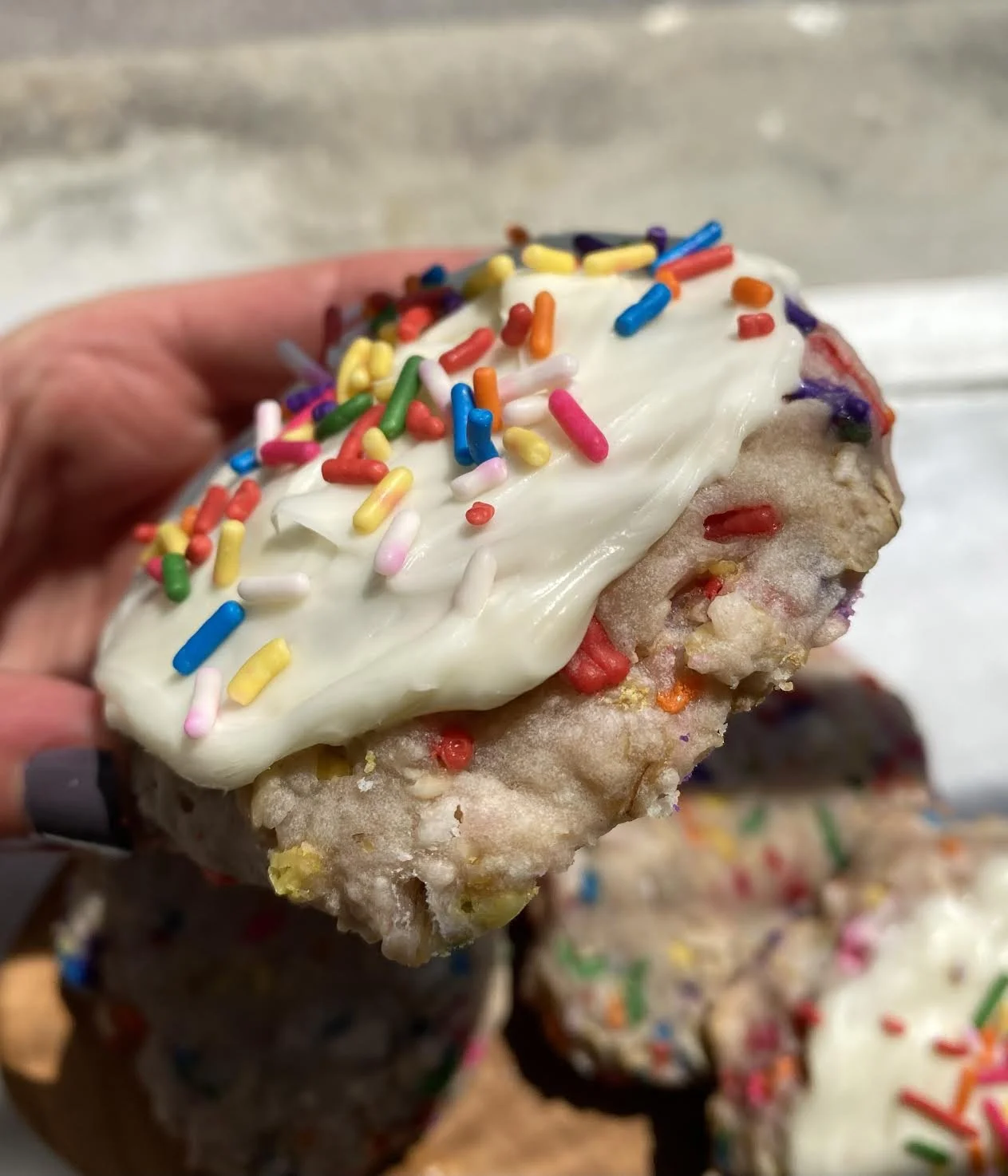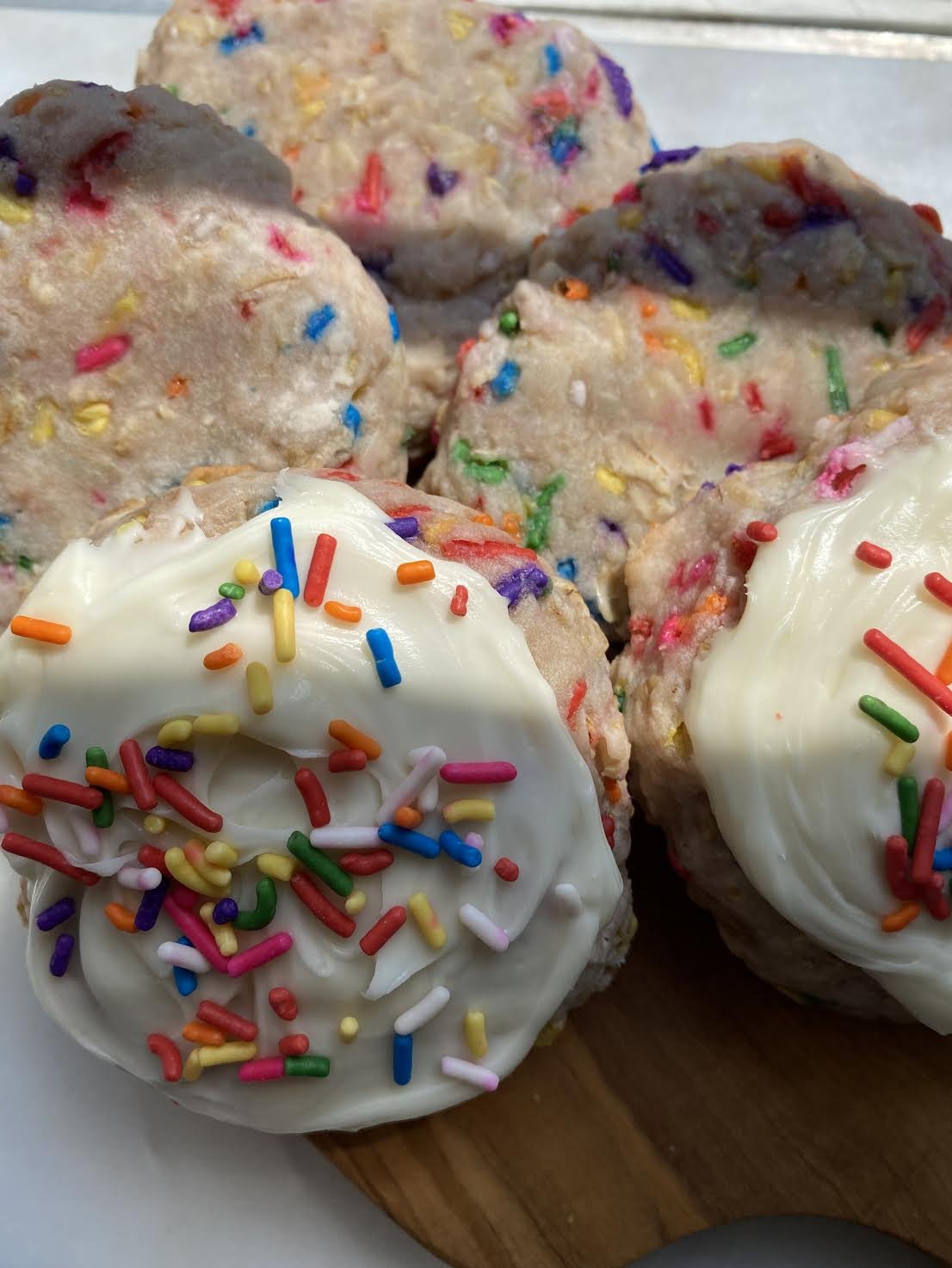 Funfetti is my second favorite dessert flavor right behind chocolate. These cookies are soft and have the perfect amount of sweetness without being too overpowering. The oats add a good texture to the cookies as well.