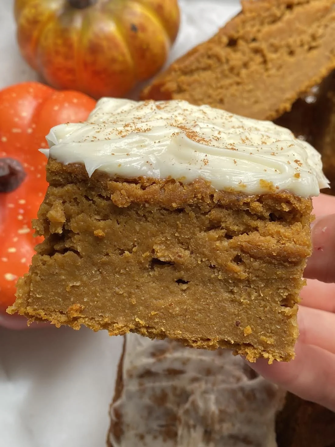I believe you can never bake too many pumpkin recipes in the fall. To me, fall is the best season to bake. These pumpkin cake bars turned out amazing, especially with the frosting added on top. Obviously, you can leave them as is, but I find the frosting takes them to the next level.