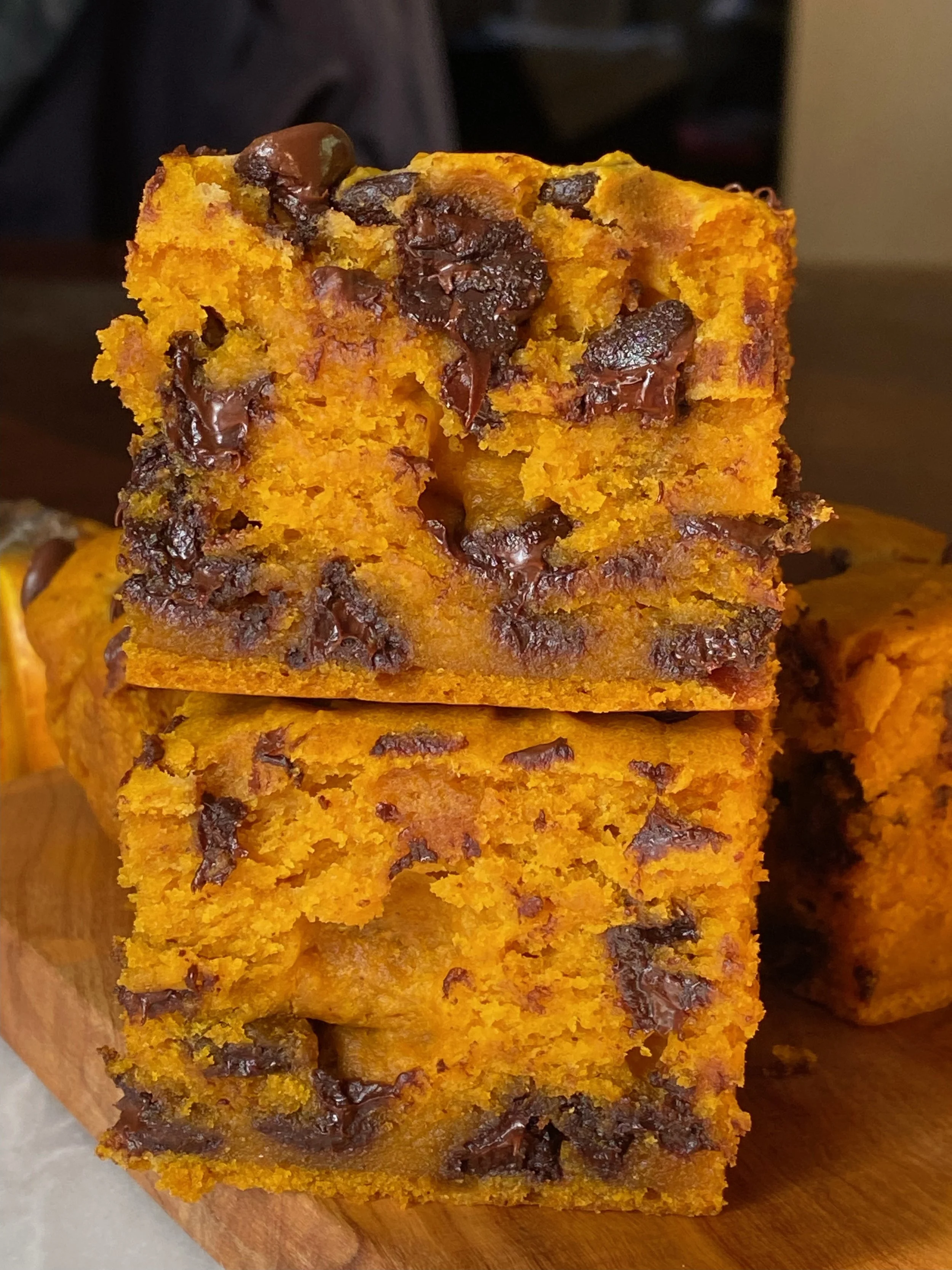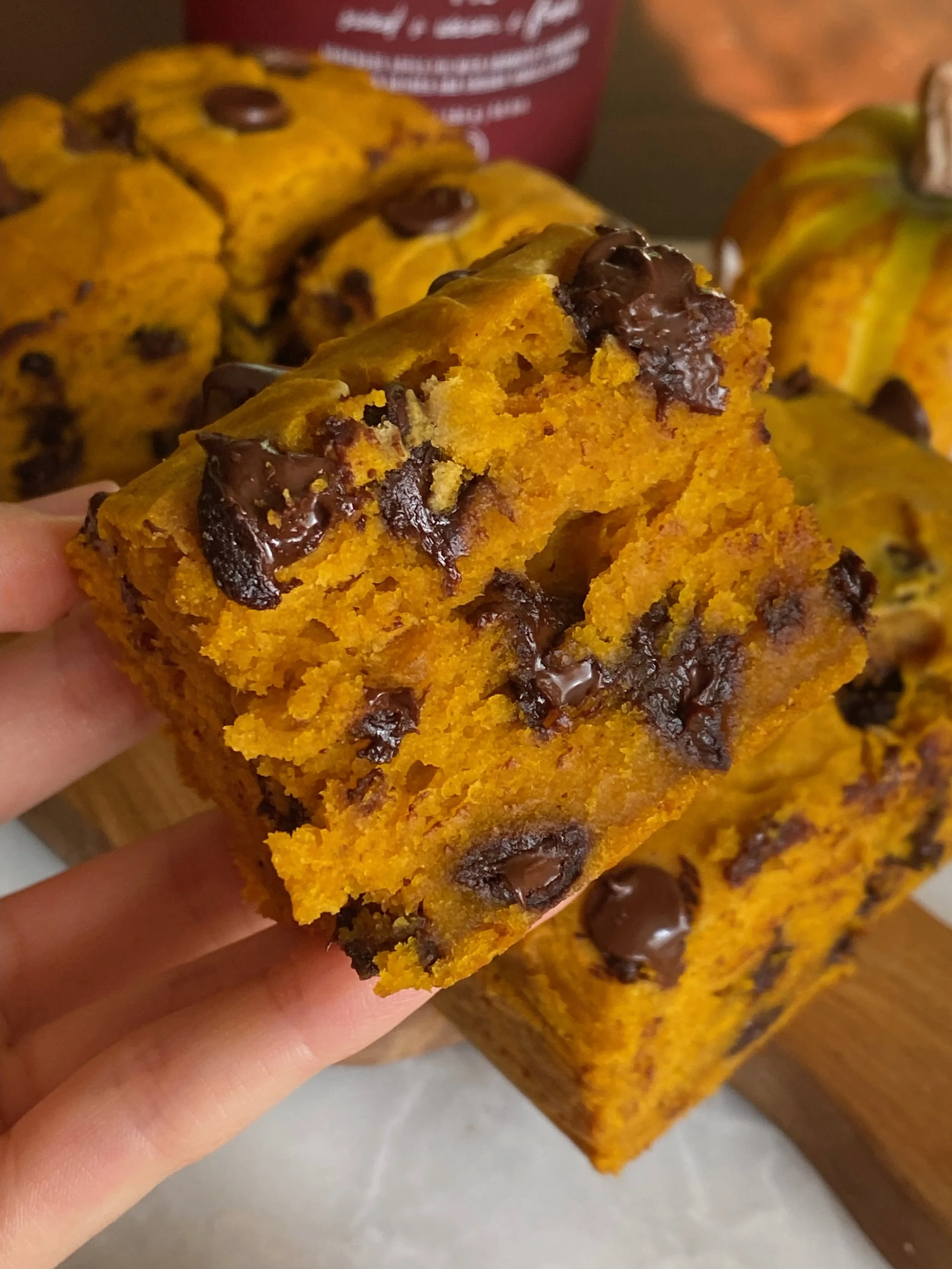 To me, fall season isn’t complete without baking some sort of pumpkin dessert. These pumpkin chocolate chip bars have the best texture and the taste is even better.