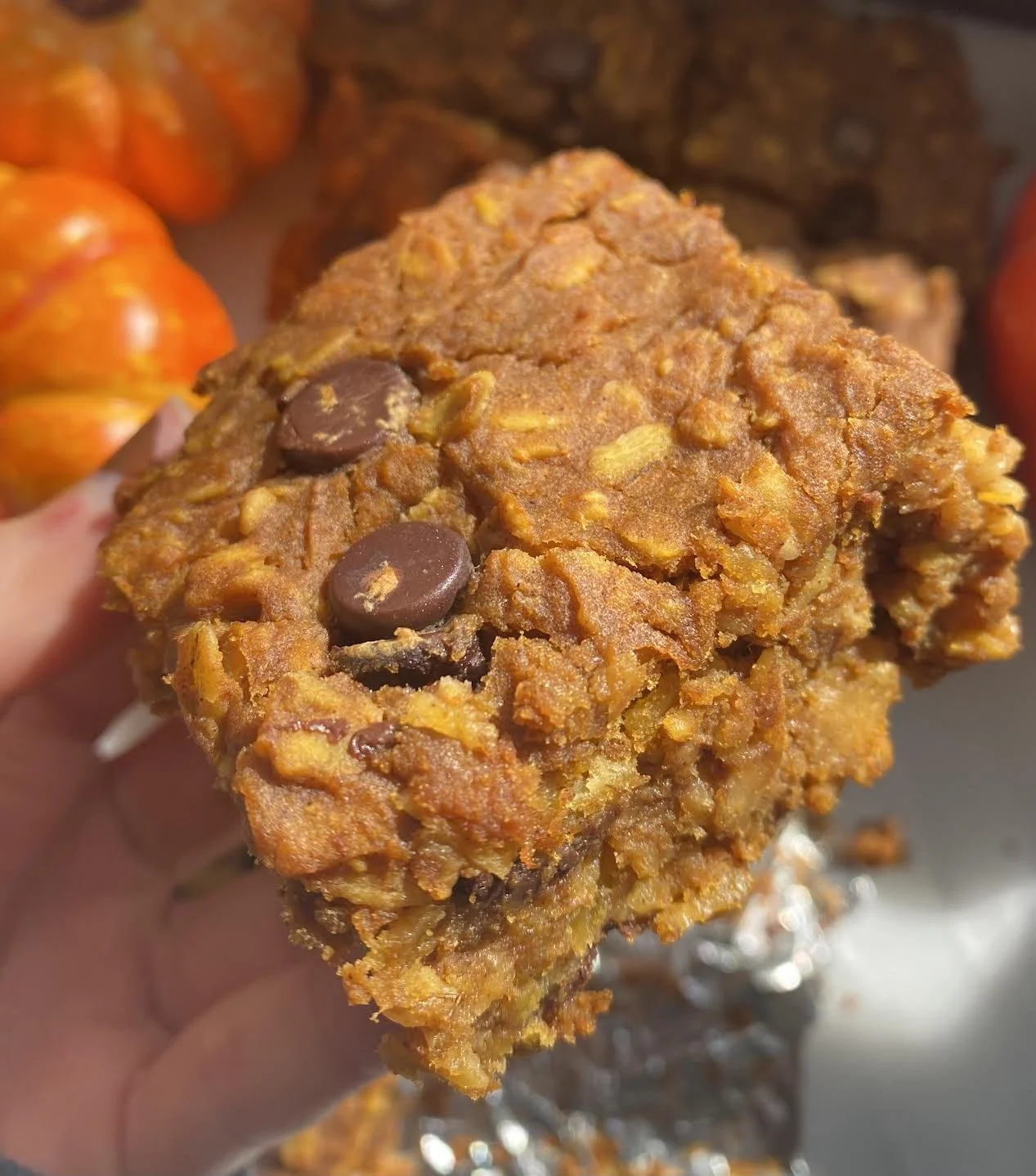 These chocolate pumpkin oat bars make the perfect breakfast, snack, or dessert. They are packed with protein from the oats and protein powder so they will help keep you full. I love adding some nut butter on top to get in healthy fats.