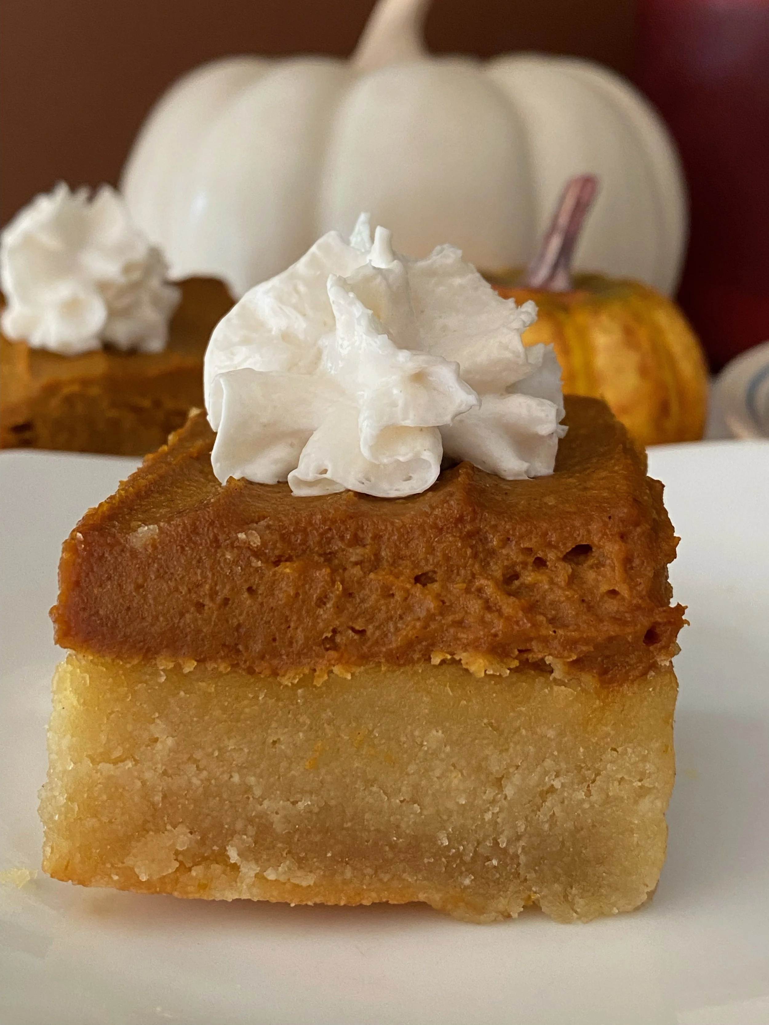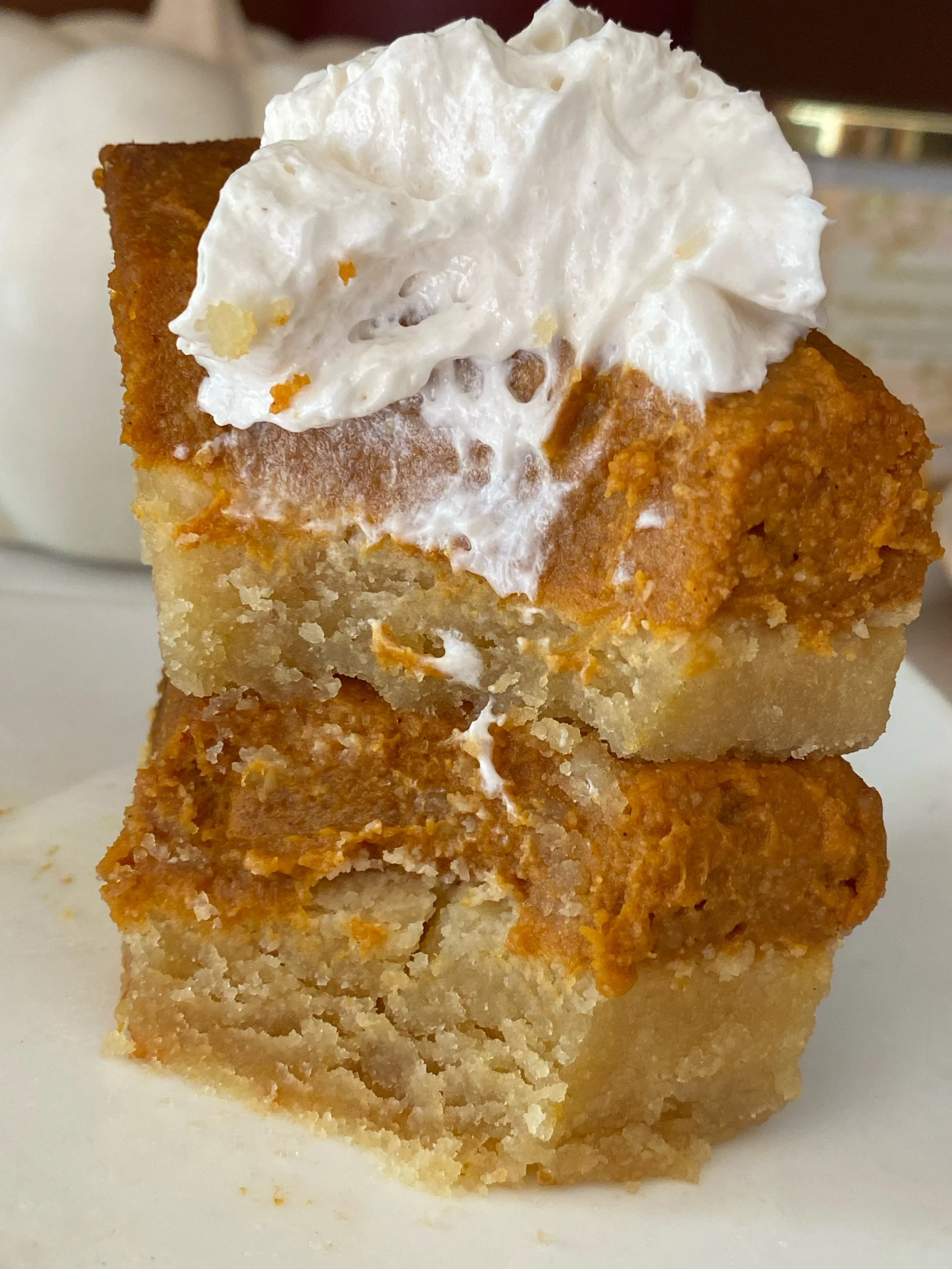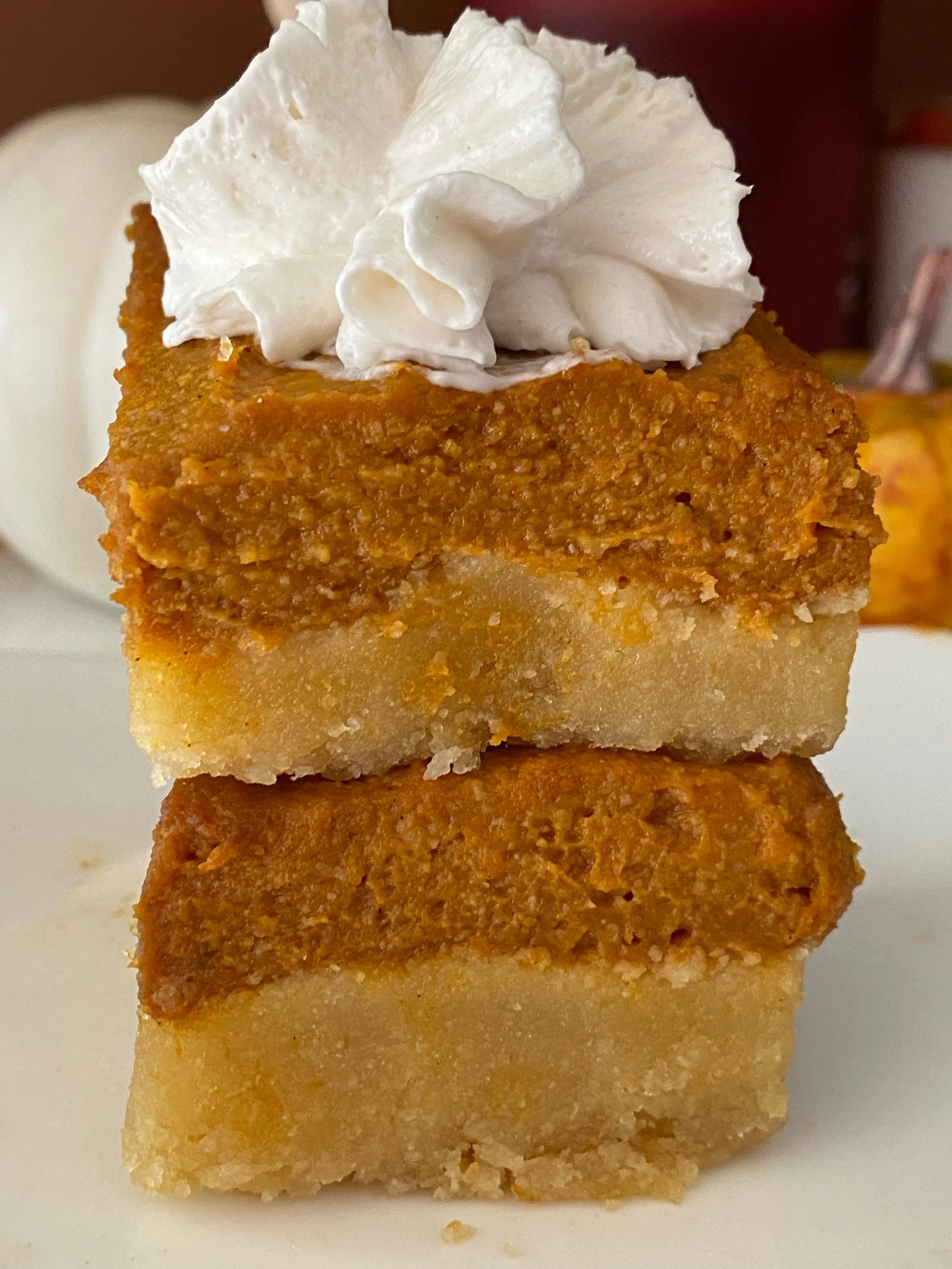 If you’re anything like me and don’t have patience to make a whole pie, these pumpkin pie bars are perfect for you. They take less than half the time of a normal pie, but you still get all the delicious flavors.