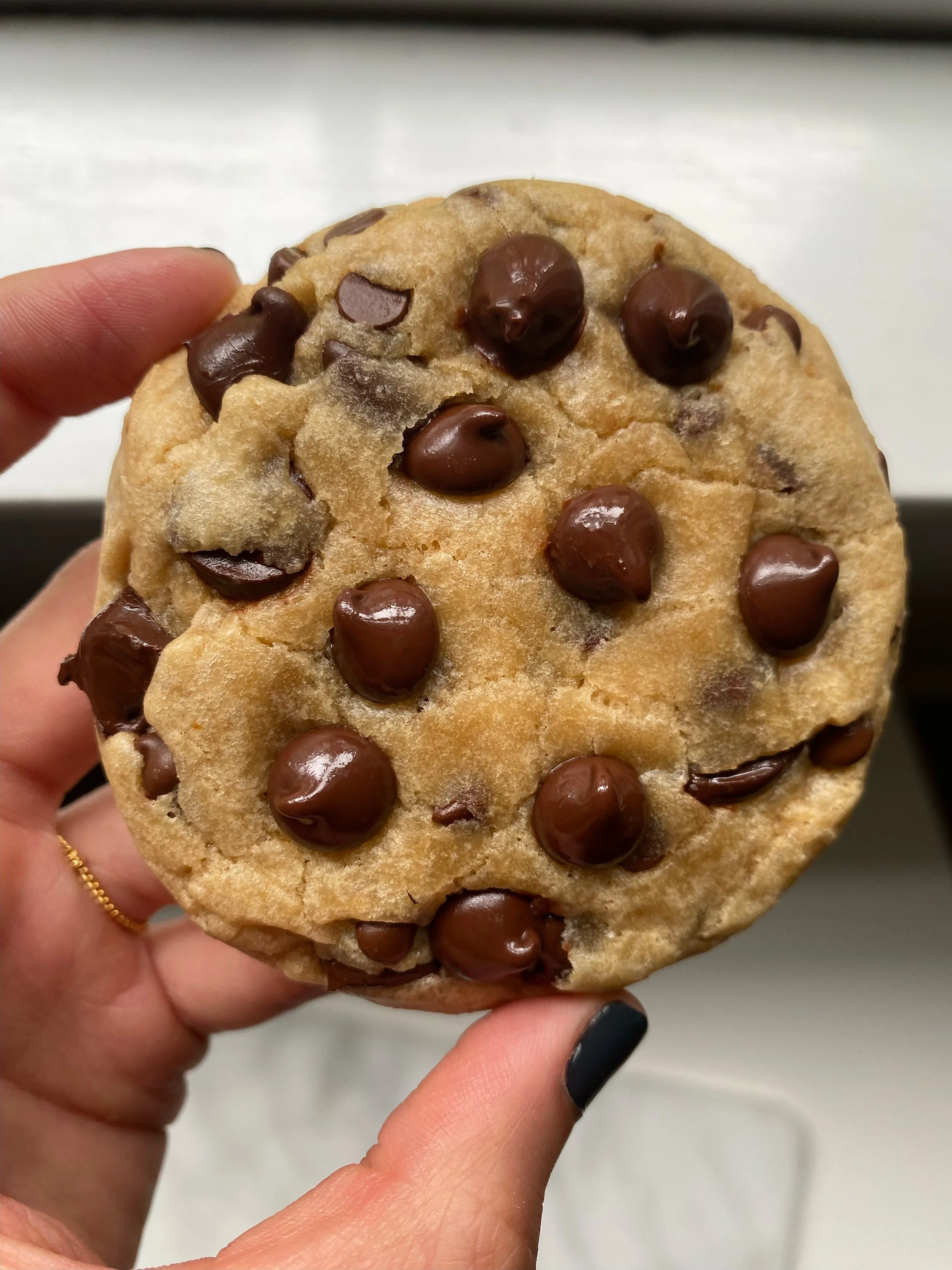 This recipe is perfect for when you are craving a cookie but don’t want to make a whole batch. This recipe makes 1-2 cookies depending on the size you make. These cookies are perfectly crispy on the outside while being chewy on the inside.