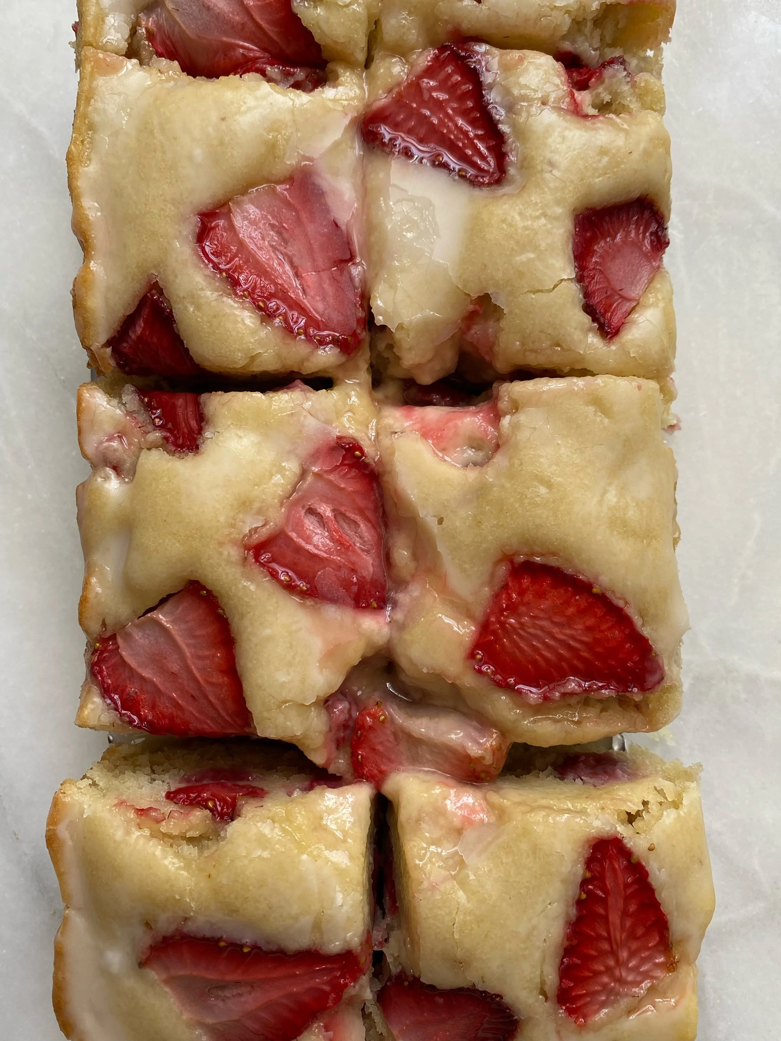 Vanilla Cake with Fresh Strawberries & Glaze