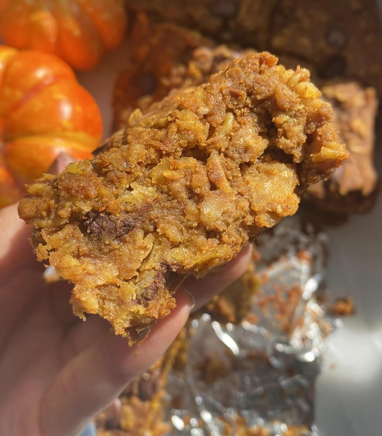 Fluffy pumpkin cookie, cheesecake filling, covered in cinnamon sugar, and topped with a powdered sugar glaze.