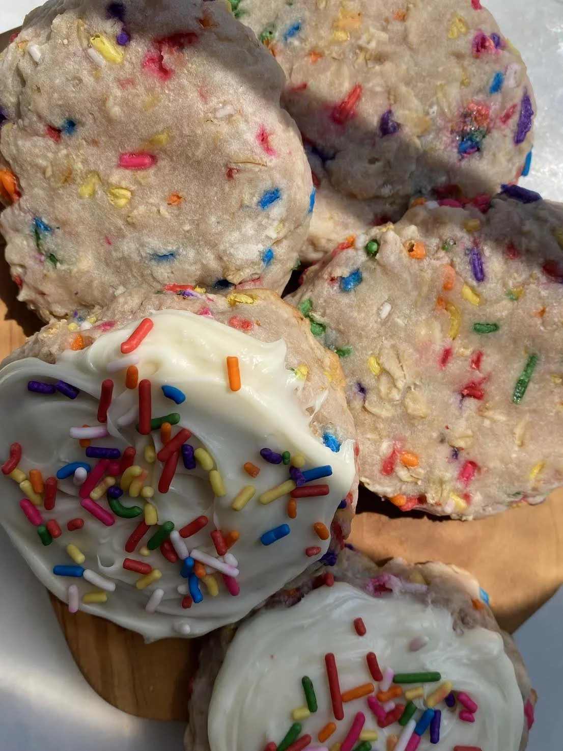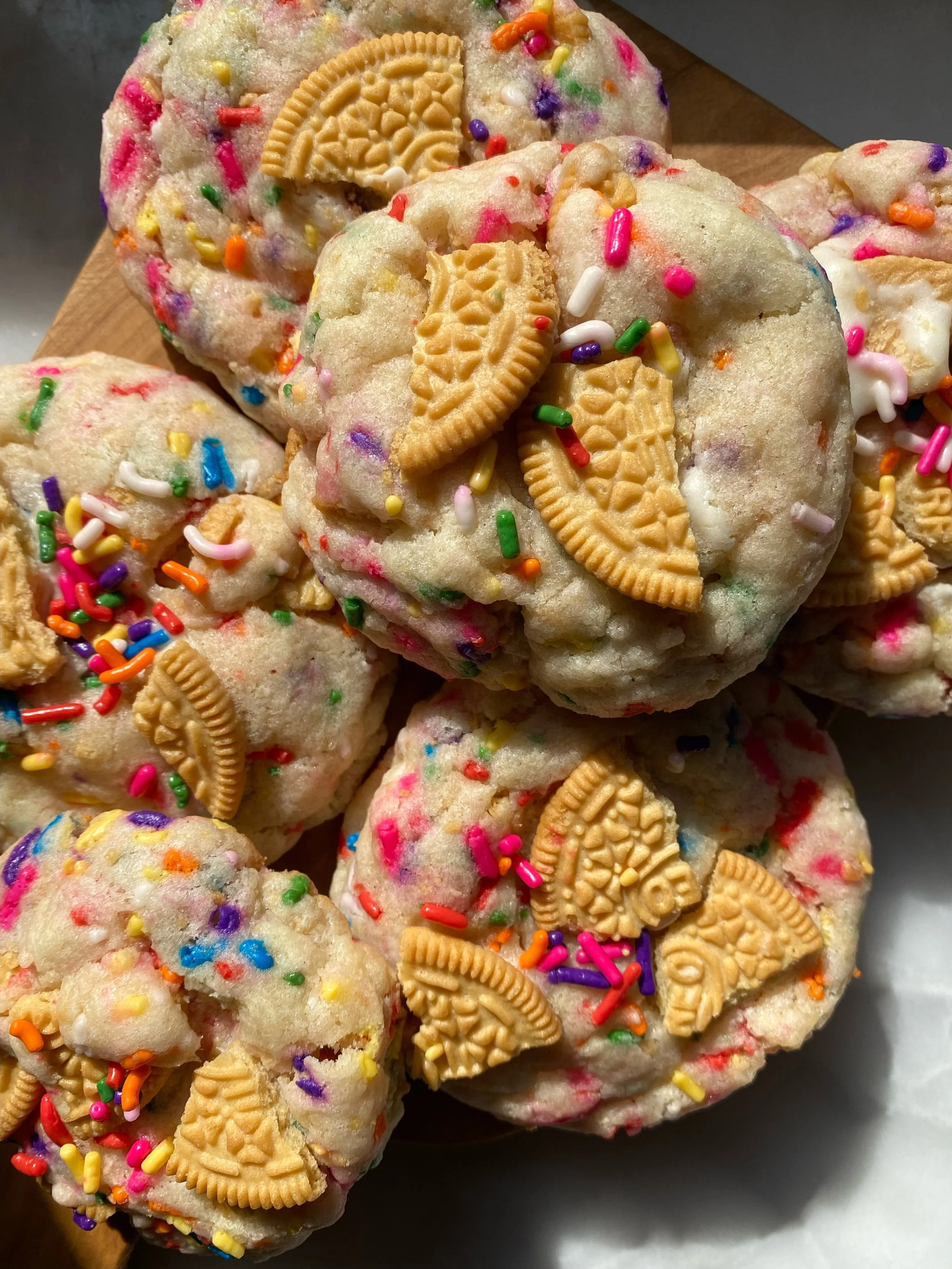 Chewy on the inside, crunchy on the outside with chunks of Oreos and sprinkles.